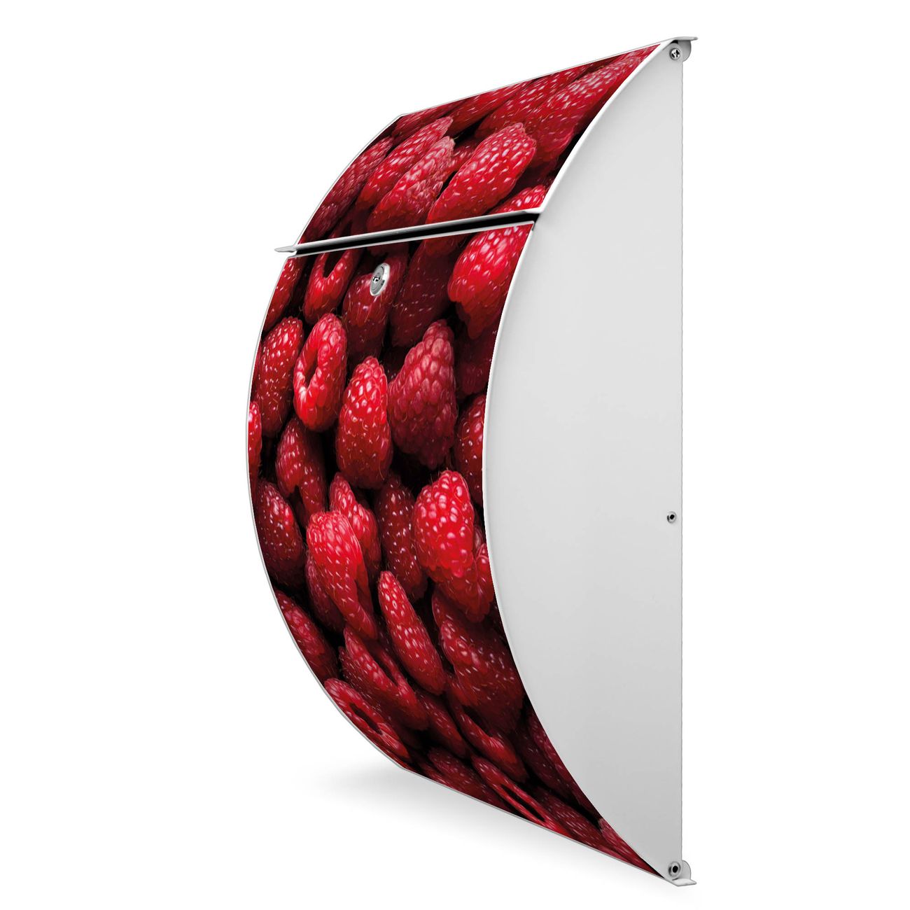 Der weiße Burg Wächter Design Briefkasten mit Motiv Himbeeren bietet Ihnen mit seinem Fassungsvermögen genügend Platz auch für große A4 Sendungen. Auf Wunsch können Sie bei uns auch den passenden Ständer kaufen und so aus dem Wandbriefkasten einen Standbriefkasten machen.