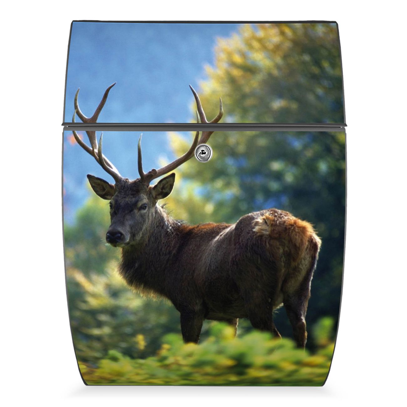 Der Burg Wächter Design Briefkasten mit Motiv Hirsch bietet Ihnen mit seinem Fassungsvermögen genügend Platz auch für große A4 Sendungen. Auf Wunsch können Sie bei uns den passenden Ständer kaufen und so aus dem Wandbriefkasten einen Standbriefkasten machen.