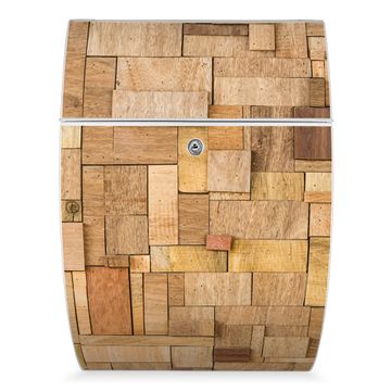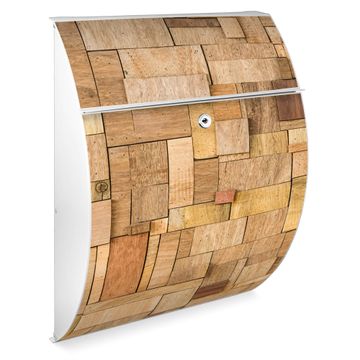 FUNKTION: DESIGN: Das Modell Riviera mit Motiv Hölzernes Flickwerk hat ein sehr ansprechendes und zeitloses Design. Heben Sie Sich von der tristen grauen Masse ab, ohne auf Funktionalität zu verzichten. Der integrierte Öffnungsstopp ermöglicht eine einfache Handhabung beim Entnehmen der Post. DETAILS: Der Postkasten besteht aus vollflächig verzinktem Stahl welcher in weiß lackiert wurde. Das Motiv besteht aus einer wetter- und UV-festen Folie, die mit einem Schutzlaminat überzogen ist, durch die Ihren Briefkasten zusätzlich vor Kratzern geschützt ist. Sie erhalten 2 Schlüssel sowie das passende Montagematerial. NUTZEN: Sie können den Briefkasten sowohl als Wandbriefkasten montieren oder einen passenden Ständer kaufen und als Standbriefkasten einbetonieren. Die Größe bietet genügend Platz für Sendungen aller Art, der Einwurf fasst auch größere A4 Sendungen. BANJADO: Ihr Briefkasten wird in Sachsen in einer kleinen Manufaktur von Hand veredelt. Die Motivfolie ist lösungsmittelfrei und schutzlaminiert, dies sorgt für einen langen Halt. Wir legen großen Wert auf die Verbindung von Funktionalität und Design. Sie erhalten Handarbeit aus Sachsen.
