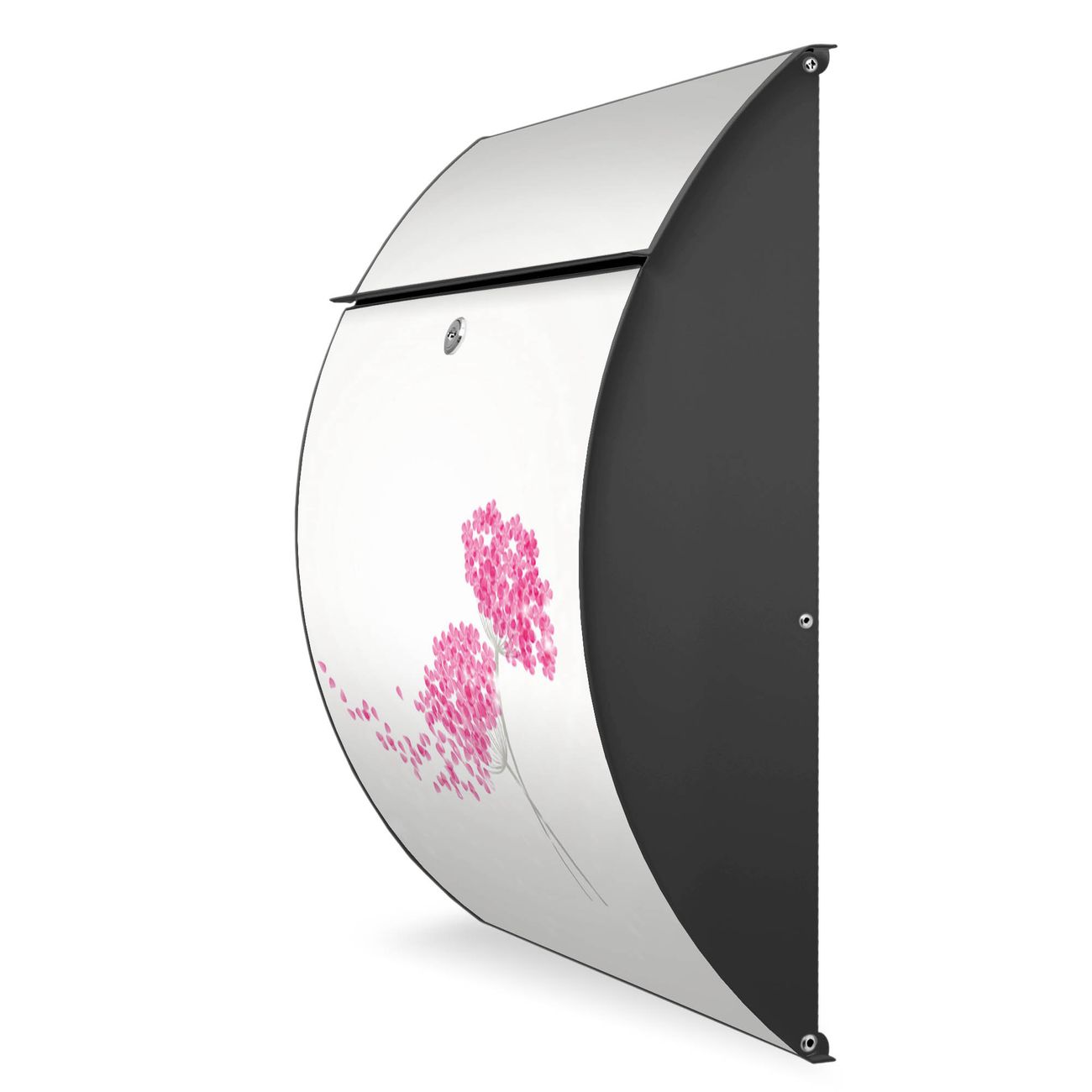 FUNKTION: DESIGN: Das Modell Riviera mit Motiv Holunder Pink hat ein sehr ansprechendes und zeitloses Design. Heben Sie Sich von der tristen grauen Masse ab, ohne auf Funktionalität zu verzichten. Der integrierte Öffnungsstopp ermöglicht eine einfache Handhabung beim Entnehmen der Post. DETAILS: Der Postkasten besteht aus vollflächig verzinktem Stahl welcher in Anthrazit lackiert wurde. Das Motiv besteht aus einer wetter- und UV-festen Folie, die mit einem Schutzlaminat überzogen ist, durch die Ihren Briefkasten zusätzlich vor Kratzern geschützt ist. Sie erhalten 2 Schlüssel sowie das passende Montagematerial. NUTZEN: Sie können den Briefkasten sowohl als Wandbriefkasten montieren oder einen passenden Ständer kaufen und als Standbriefkasten einbetonieren. Die Größe bietet genügend Platz für Sendungen aller Art, der Einwurf fasst auch größere A4 Sendungen. BANJADO: Ihr Briefkasten wird in Sachsen in einer kleinen Manufaktur von Hand veredelt. Die Motivfolie ist lösungsmittelfrei und schutzlaminiert, dies sorgt für einen langen Halt. Wir legen großen Wert auf die Verbindung von Funktionalität und Design. Sie erhalten Handarbeit aus Sachsen.