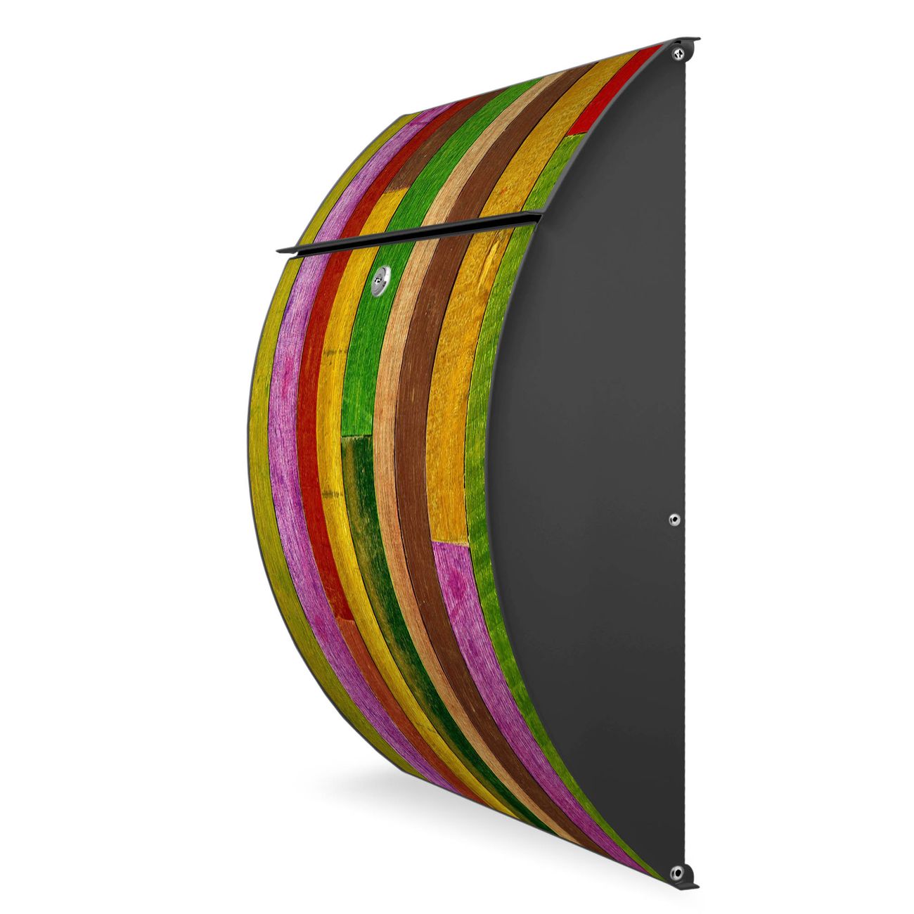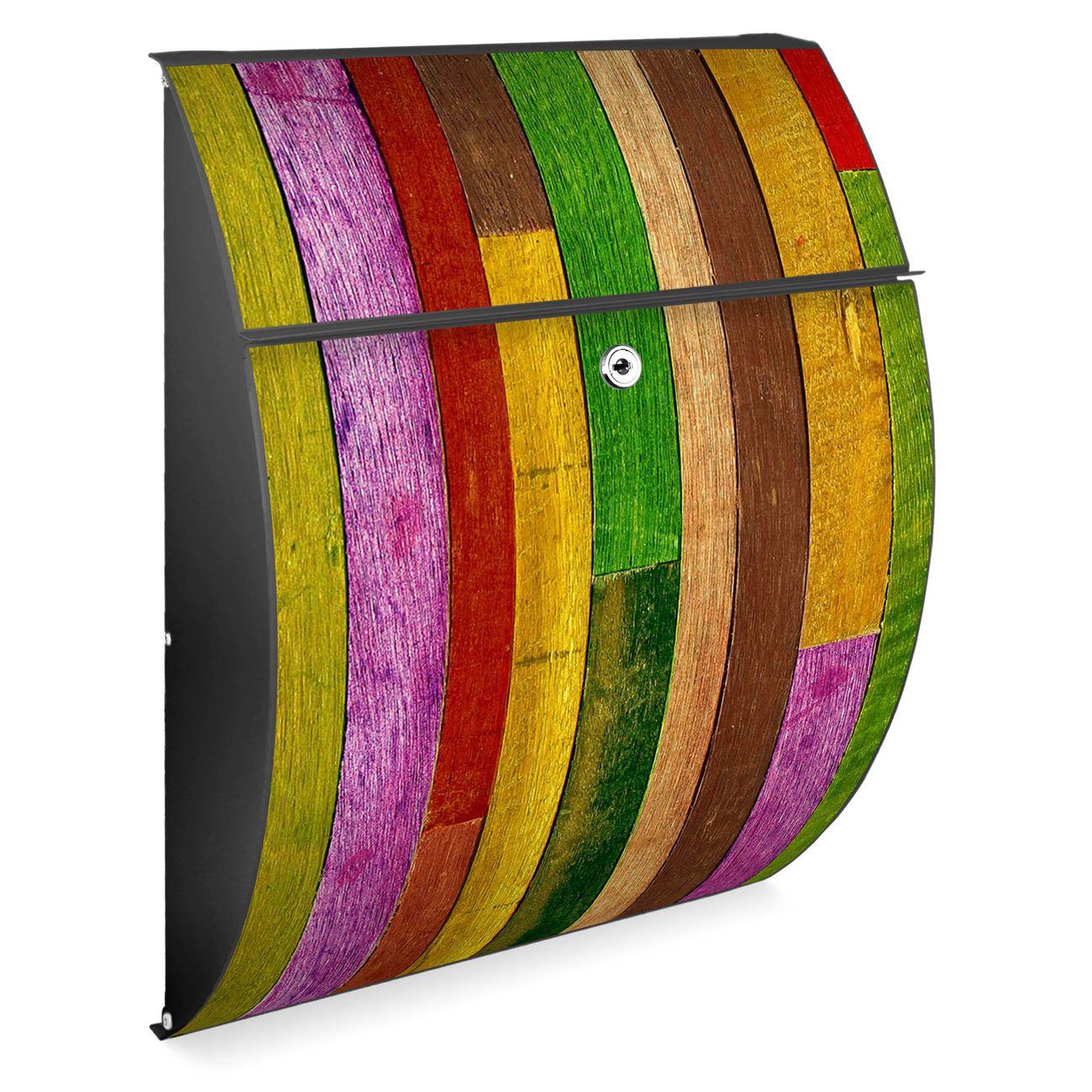 FUNKTION: DESIGN: Das Modell Riviera mit Motiv Holz Collage Bunt hat ein sehr ansprechendes und zeitloses Design. Heben Sie Sich von der tristen grauen Masse ab, ohne auf Funktionalität zu verzichten. Der integrierte Öffnungsstopp ermöglicht eine einfache Handhabung beim Entnehmen der Post. DETAILS: Der Postkasten besteht aus vollflächig verzinktem Stahl welcher in Anthrazit lackiert wurde. Das Motiv besteht aus einer wetter- und UV-festen Folie, die mit einem Schutzlaminat überzogen ist, durch die Ihren Briefkasten zusätzlich vor Kratzern geschützt ist. Sie erhalten 2 Schlüssel sowie das passende Montagematerial. NUTZEN: Sie können den Briefkasten sowohl als Wandbriefkasten montieren oder einen passenden Ständer kaufen und als Standbriefkasten einbetonieren. Die Größe bietet genügend Platz für Sendungen aller Art, der Einwurf fasst auch größere A4 Sendungen. BANJADO: Ihr Briefkasten wird in Sachsen in einer kleinen Manufaktur von Hand veredelt. Die Motivfolie ist lösungsmittelfrei und schutzlaminiert, dies sorgt für einen langen Halt. Wir legen großen Wert auf die Verbindung von Funktionalität und Design. Sie erhalten Handarbeit aus Sachsen.