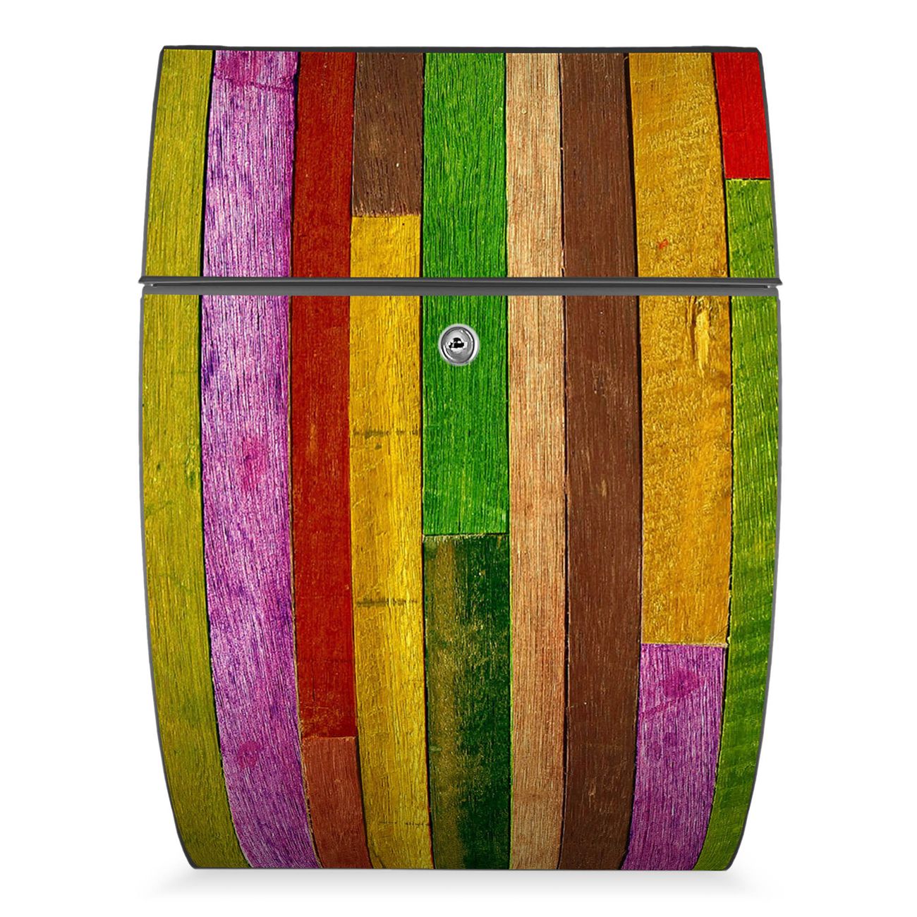 Der Burg Wächter Design Briefkasten mit Motiv Holz Collage Bunt bietet Ihnen mit seinem Fassungsvermögen genügend Platz auch für große A4 Sendungen. Auf Wunsch können Sie bei uns den passenden Ständer kaufen und so aus dem Wandbriefkasten einen Standbriefkasten machen.