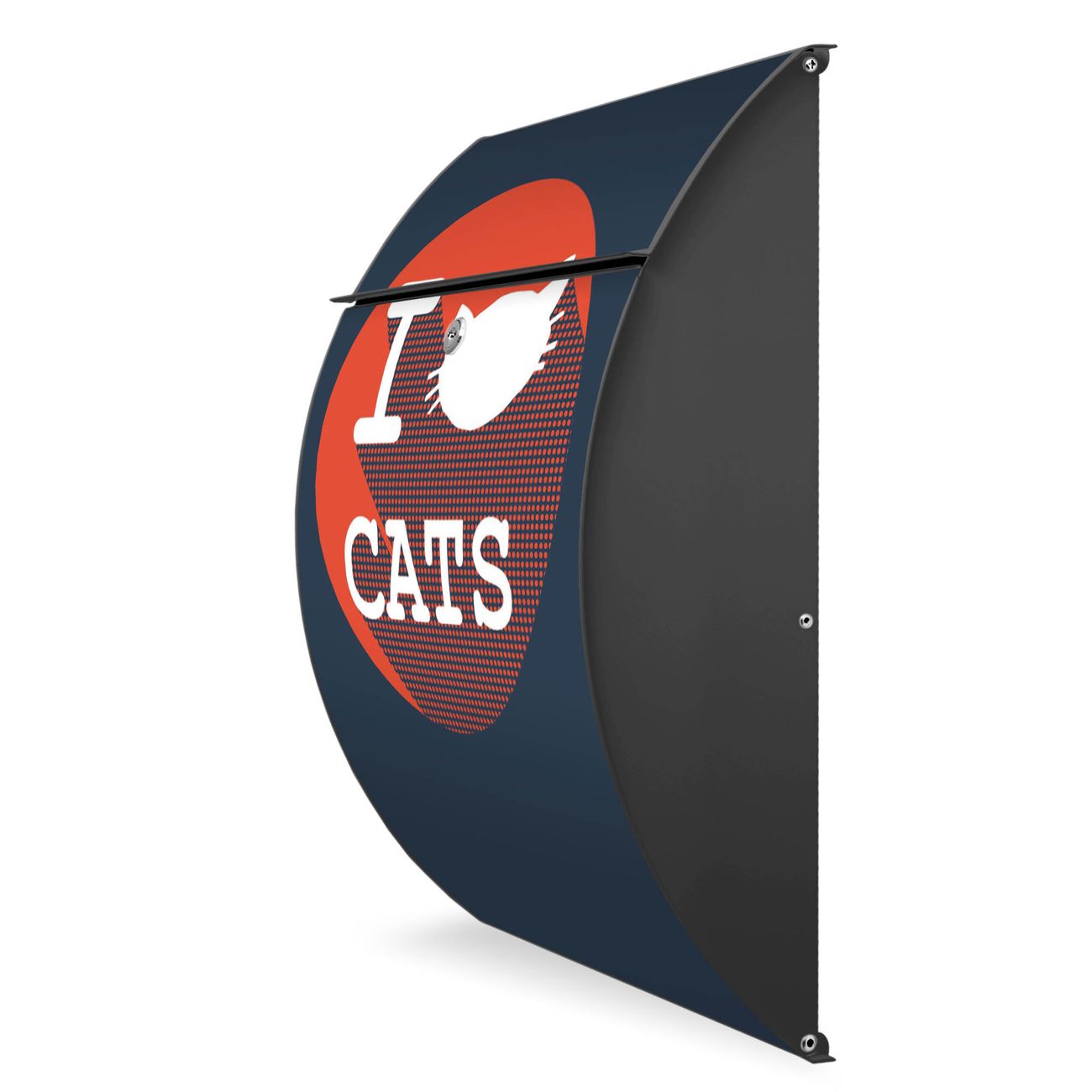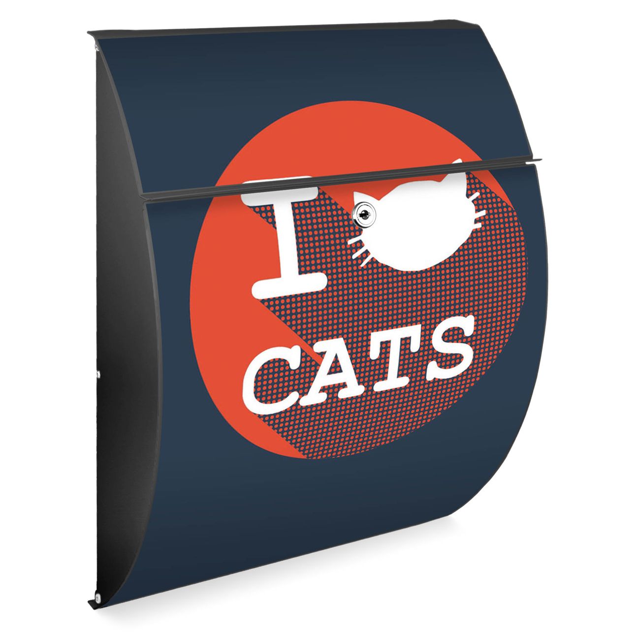 FUNKTION: DESIGN: Das Modell Riviera mit Motiv I Love Cats hat ein sehr ansprechendes und zeitloses Design. Heben Sie Sich von der tristen grauen Masse ab, ohne auf Funktionalität zu verzichten. Der integrierte Öffnungsstopp ermöglicht eine einfache Handhabung beim Entnehmen der Post. DETAILS: Der Postkasten besteht aus vollflächig verzinktem Stahl welcher in Anthrazit lackiert wurde. Das Motiv besteht aus einer wetter- und UV-festen Folie, die mit einem Schutzlaminat überzogen ist, durch die Ihren Briefkasten zusätzlich vor Kratzern geschützt ist. Sie erhalten 2 Schlüssel sowie das passende Montagematerial. NUTZEN: Sie können den Briefkasten sowohl als Wandbriefkasten montieren oder einen passenden Ständer kaufen und als Standbriefkasten einbetonieren. Die Größe bietet genügend Platz für Sendungen aller Art, der Einwurf fasst auch größere A4 Sendungen. BANJADO: Ihr Briefkasten wird in Sachsen in einer kleinen Manufaktur von Hand veredelt. Die Motivfolie ist lösungsmittelfrei und schutzlaminiert, dies sorgt für einen langen Halt. Wir legen großen Wert auf die Verbindung von Funktionalität und Design. Sie erhalten Handarbeit aus Sachsen.