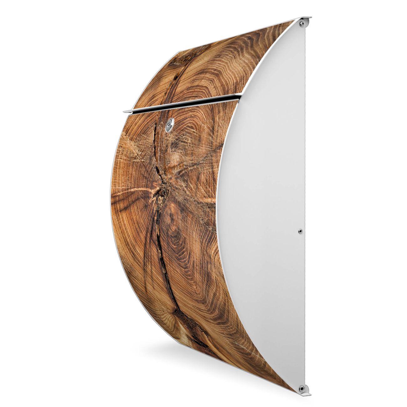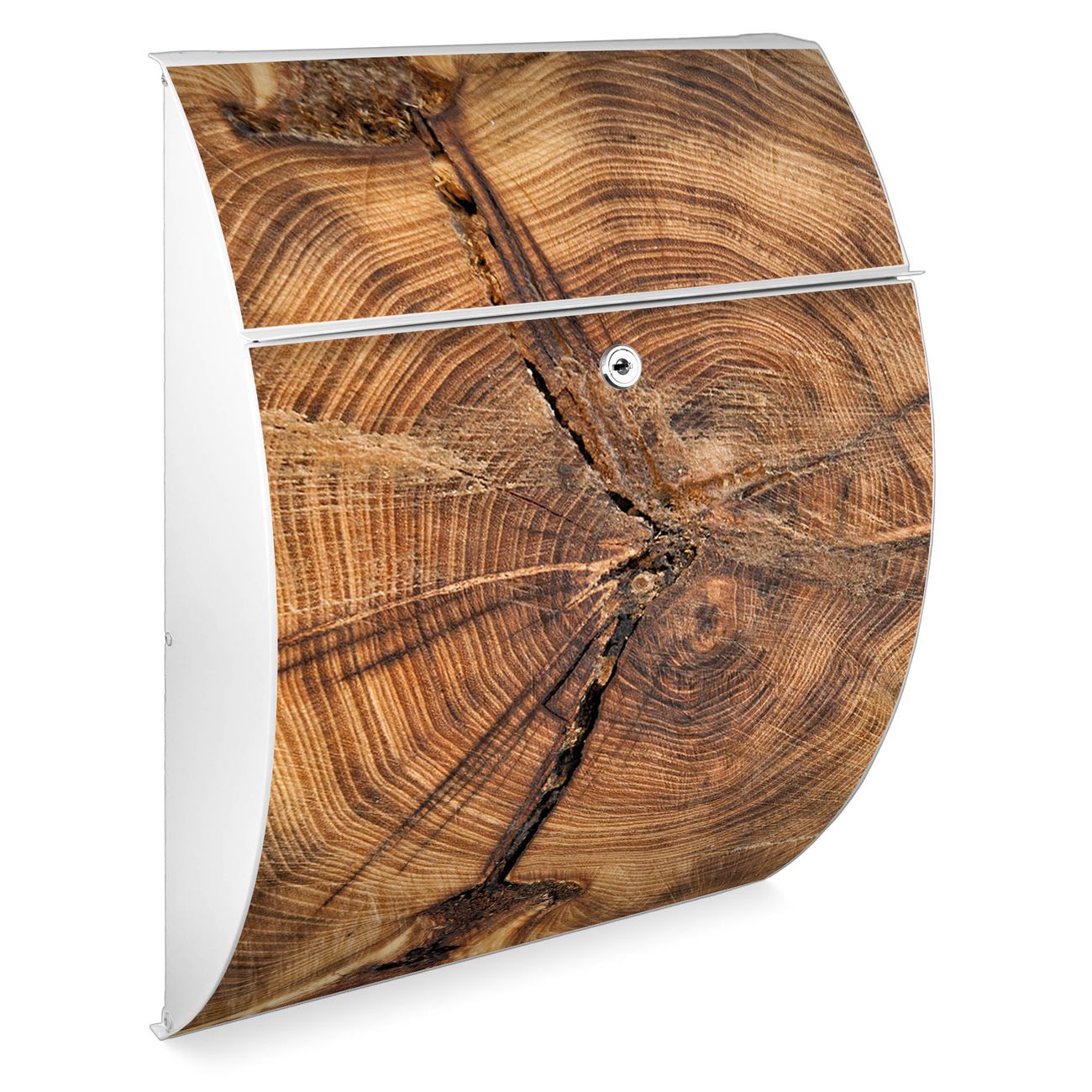 FUNKTION: DESIGN: Das Modell Riviera mit Motiv Jahresringe hat ein sehr ansprechendes und zeitloses Design. Heben Sie Sich von der tristen grauen Masse ab, ohne auf Funktionalität zu verzichten. Der integrierte Öffnungsstopp ermöglicht eine einfache Handhabung beim Entnehmen der Post. DETAILS: Der Postkasten besteht aus vollflächig verzinktem Stahl welcher in weiß lackiert wurde. Das Motiv besteht aus einer wetter- und UV-festen Folie, die mit einem Schutzlaminat überzogen ist, durch die Ihren Briefkasten zusätzlich vor Kratzern geschützt ist. Sie erhalten 2 Schlüssel sowie das passende Montagematerial. NUTZEN: Sie können den Briefkasten sowohl als Wandbriefkasten montieren oder einen passenden Ständer kaufen und als Standbriefkasten einbetonieren. Die Größe bietet genügend Platz für Sendungen aller Art, der Einwurf fasst auch größere A4 Sendungen. BANJADO: Ihr Briefkasten wird in Sachsen in einer kleinen Manufaktur von Hand veredelt. Die Motivfolie ist lösungsmittelfrei und schutzlaminiert, dies sorgt für einen langen Halt. Wir legen großen Wert auf die Verbindung von Funktionalität und Design. Sie erhalten Handarbeit aus Sachsen.