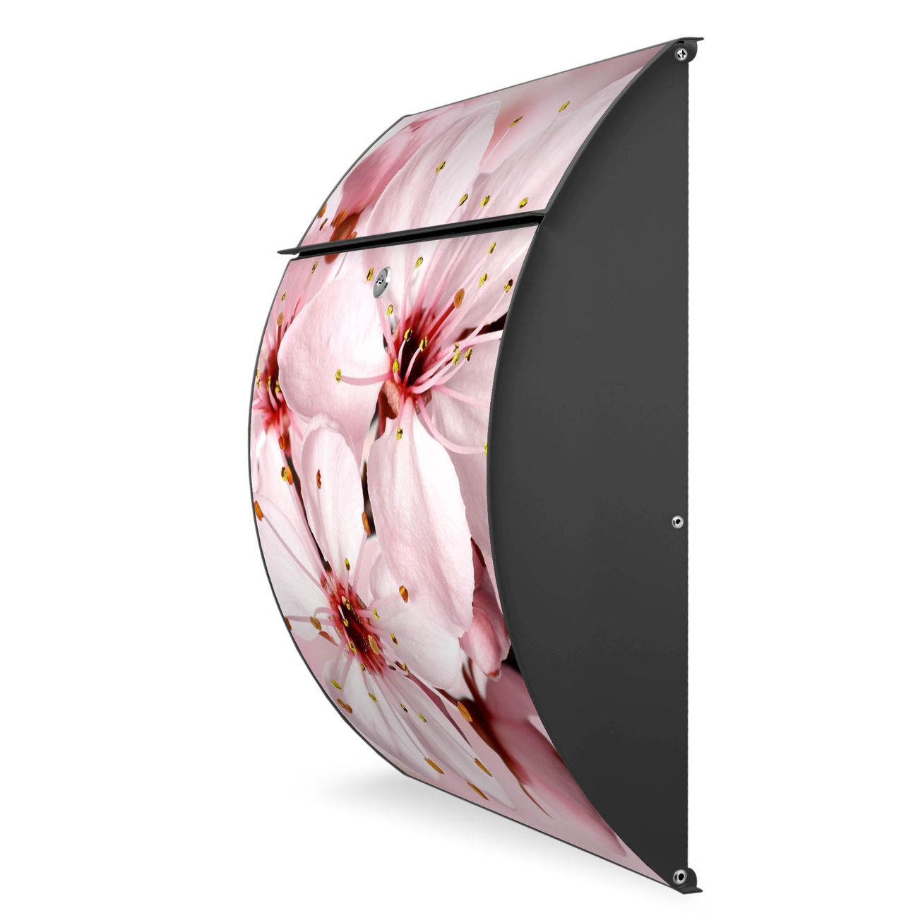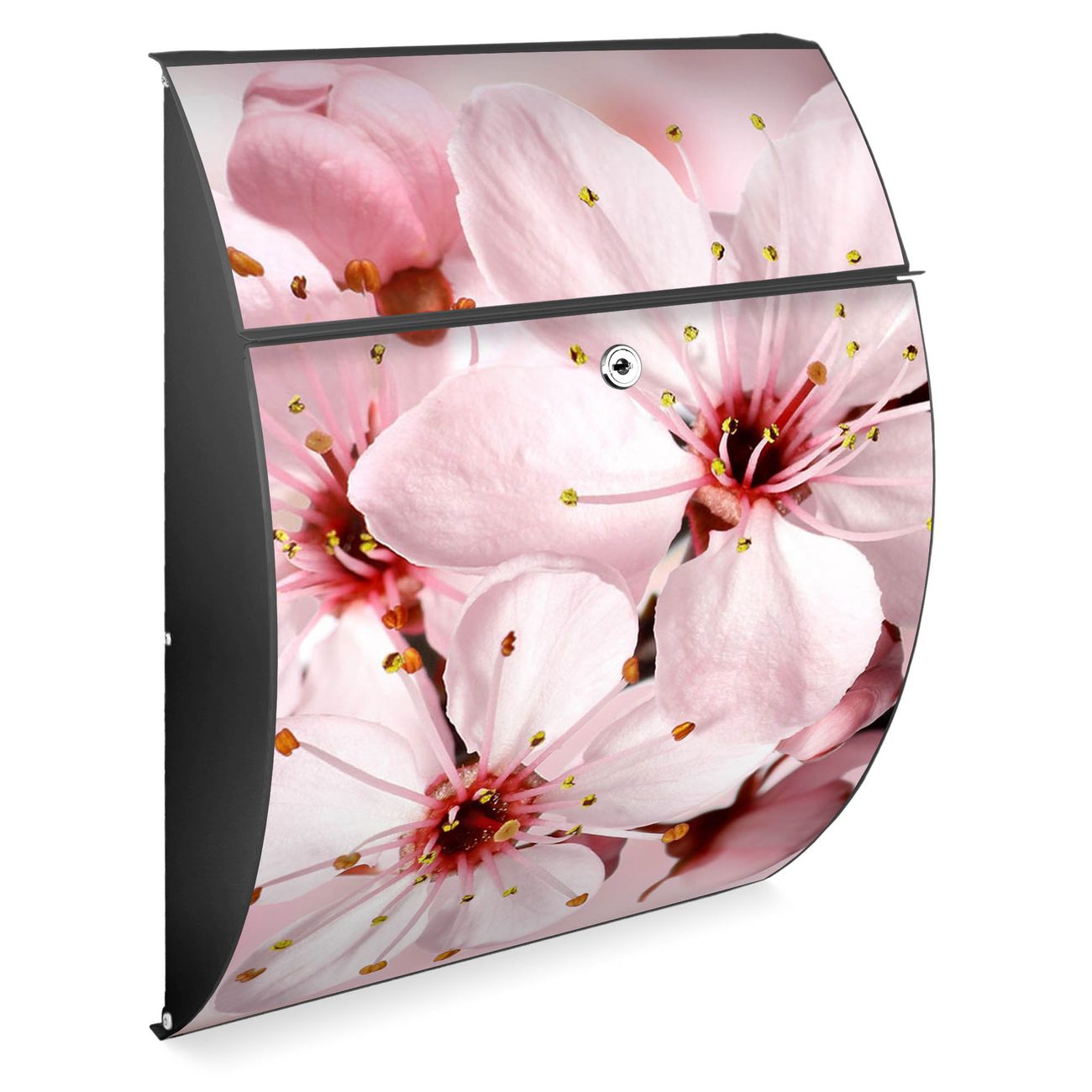 FUNKTION: DESIGN: Das Modell Riviera mit Motiv Japanische Kirsche hat ein sehr ansprechendes und zeitloses Design. Heben Sie Sich von der tristen grauen Masse ab, ohne auf Funktionalität zu verzichten. Der integrierte Öffnungsstopp ermöglicht eine einfache Handhabung beim Entnehmen der Post. DETAILS: Der Postkasten besteht aus vollflächig verzinktem Stahl welcher in Anthrazit lackiert wurde. Das Motiv besteht aus einer wetter- und UV-festen Folie, die mit einem Schutzlaminat überzogen ist, durch die Ihren Briefkasten zusätzlich vor Kratzern geschützt ist. Sie erhalten 2 Schlüssel sowie das passende Montagematerial. NUTZEN: Sie können den Briefkasten sowohl als Wandbriefkasten montieren oder einen passenden Ständer kaufen und als Standbriefkasten einbetonieren. Die Größe bietet genügend Platz für Sendungen aller Art, der Einwurf fasst auch größere A4 Sendungen. BANJADO: Ihr Briefkasten wird in Sachsen in einer kleinen Manufaktur von Hand veredelt. Die Motivfolie ist lösungsmittelfrei und schutzlaminiert, dies sorgt für einen langen Halt. Wir legen großen Wert auf die Verbindung von Funktionalität und Design. Sie erhalten Handarbeit aus Sachsen.
