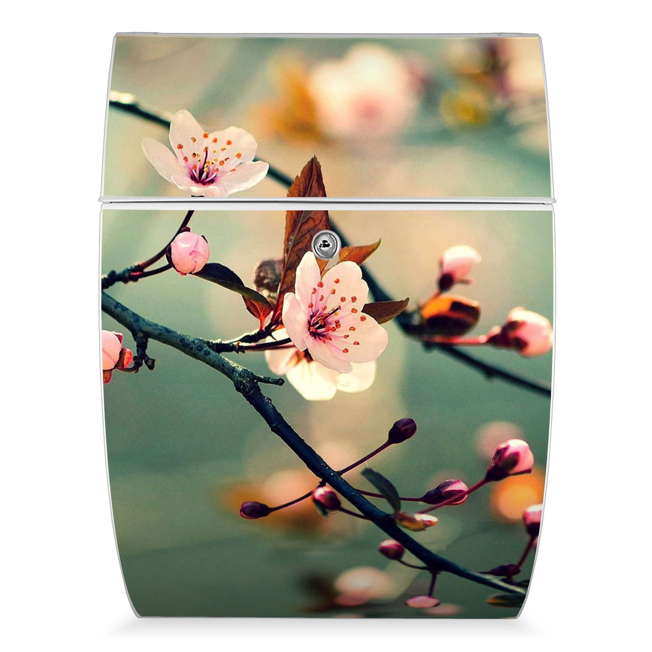 Der weiße Burg Wächter Design Briefkasten mit Motiv Japankirsche bietet Ihnen mit seinem Fassungsvermögen genügend Platz auch für große A4 Sendungen. Auf Wunsch können Sie bei uns auch den passenden Ständer kaufen und so aus dem Wandbriefkasten einen Standbriefkasten machen.