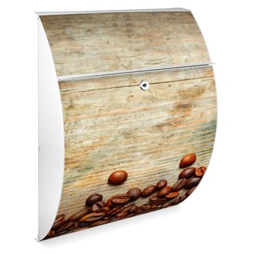 Der weiße Burg Wächter Design Briefkasten mit Motiv Kaffeebohnen bietet Ihnen mit seinem Fassungsvermögen genügend Platz auch für große A4 Sendungen. Auf Wunsch können Sie bei uns auch den passenden Ständer kaufen und so aus dem Wandbriefkasten einen Standbriefkasten machen.