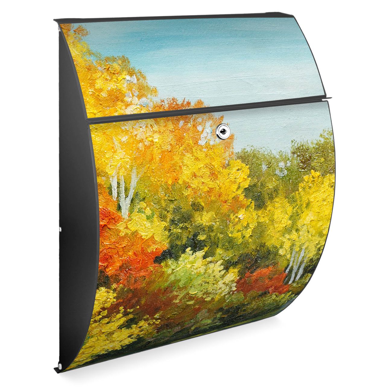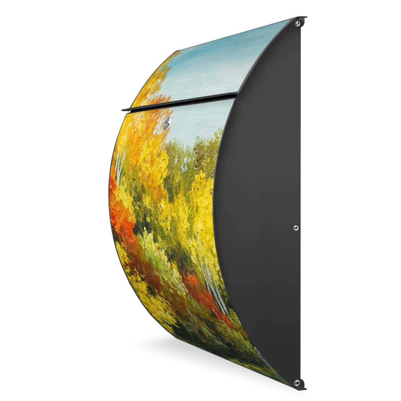 Der Burg Wächter Design Briefkasten mit Motiv Kanal Im Herbst bietet Ihnen mit seinem Fassungsvermögen genügend Platz auch für große A4 Sendungen. Auf Wunsch können Sie bei uns den passenden Ständer kaufen und so aus dem Wandbriefkasten einen Standbriefkasten machen.