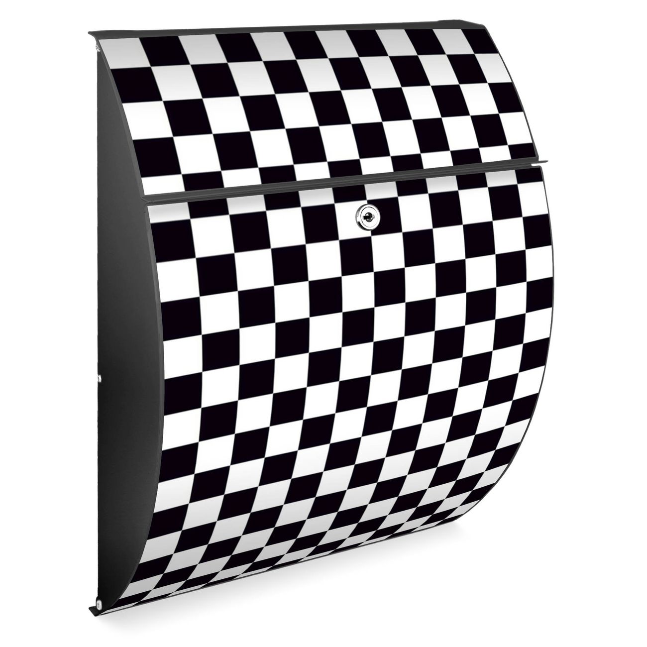 FUNKTION: DESIGN: Das Modell Riviera mit Motiv Karo Schwarz hat ein sehr ansprechendes und zeitloses Design. Heben Sie Sich von der tristen grauen Masse ab, ohne auf Funktionalität zu verzichten. Der integrierte Öffnungsstopp ermöglicht eine einfache Handhabung beim Entnehmen der Post. DETAILS: Der Postkasten besteht aus vollflächig verzinktem Stahl welcher in Anthrazit lackiert wurde. Das Motiv besteht aus einer wetter- und UV-festen Folie, die mit einem Schutzlaminat überzogen ist, durch die Ihren Briefkasten zusätzlich vor Kratzern geschützt ist. Sie erhalten 2 Schlüssel sowie das passende Montagematerial. NUTZEN: Sie können den Briefkasten sowohl als Wandbriefkasten montieren oder einen passenden Ständer kaufen und als Standbriefkasten einbetonieren. Die Größe bietet genügend Platz für Sendungen aller Art, der Einwurf fasst auch größere A4 Sendungen. BANJADO: Ihr Briefkasten wird in Sachsen in einer kleinen Manufaktur von Hand veredelt. Die Motivfolie ist lösungsmittelfrei und schutzlaminiert, dies sorgt für einen langen Halt. Wir legen großen Wert auf die Verbindung von Funktionalität und Design. Sie erhalten Handarbeit aus Sachsen.