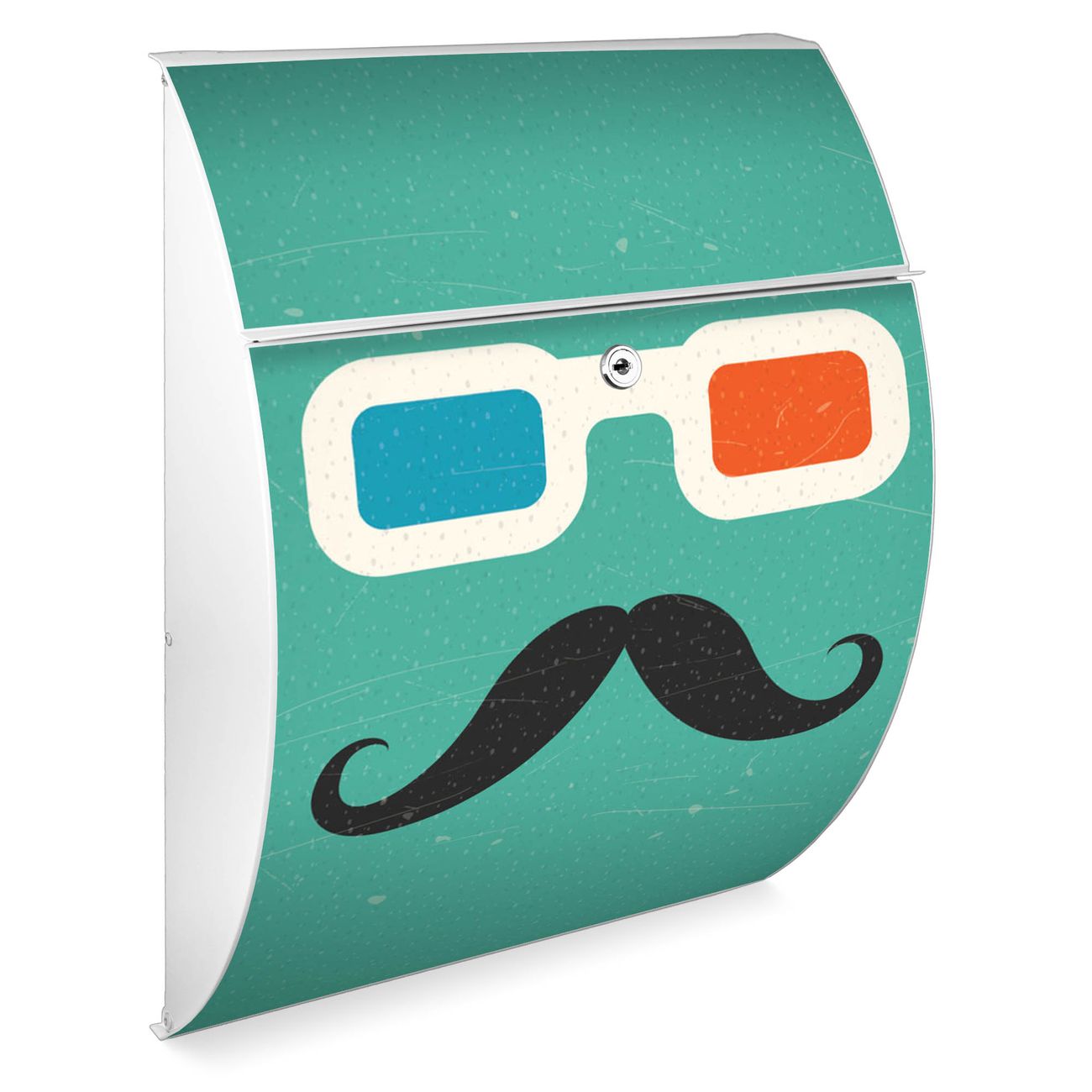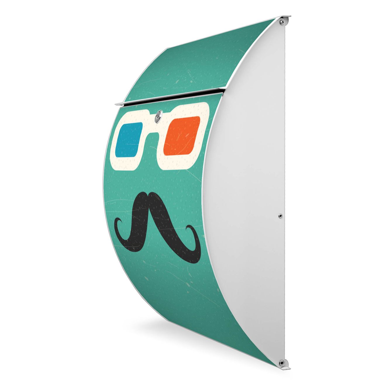 FUNKTION: DESIGN: Das Modell Riviera mit Motiv Kinobrille hat ein sehr ansprechendes und zeitloses Design. Heben Sie Sich von der tristen grauen Masse ab, ohne auf Funktionalität zu verzichten. Der integrierte Öffnungsstopp ermöglicht eine einfache Handhabung beim Entnehmen der Post. DETAILS: Der Postkasten besteht aus vollflächig verzinktem Stahl welcher in weiß lackiert wurde. Das Motiv besteht aus einer wetter- und UV-festen Folie, die mit einem Schutzlaminat überzogen ist, durch die Ihren Briefkasten zusätzlich vor Kratzern geschützt ist. Sie erhalten 2 Schlüssel sowie das passende Montagematerial. NUTZEN: Sie können den Briefkasten sowohl als Wandbriefkasten montieren oder einen passenden Ständer kaufen und als Standbriefkasten einbetonieren. Die Größe bietet genügend Platz für Sendungen aller Art, der Einwurf fasst auch größere A4 Sendungen. BANJADO: Ihr Briefkasten wird in Sachsen in einer kleinen Manufaktur von Hand veredelt. Die Motivfolie ist lösungsmittelfrei und schutzlaminiert, dies sorgt für einen langen Halt. Wir legen großen Wert auf die Verbindung von Funktionalität und Design. Sie erhalten Handarbeit aus Sachsen.