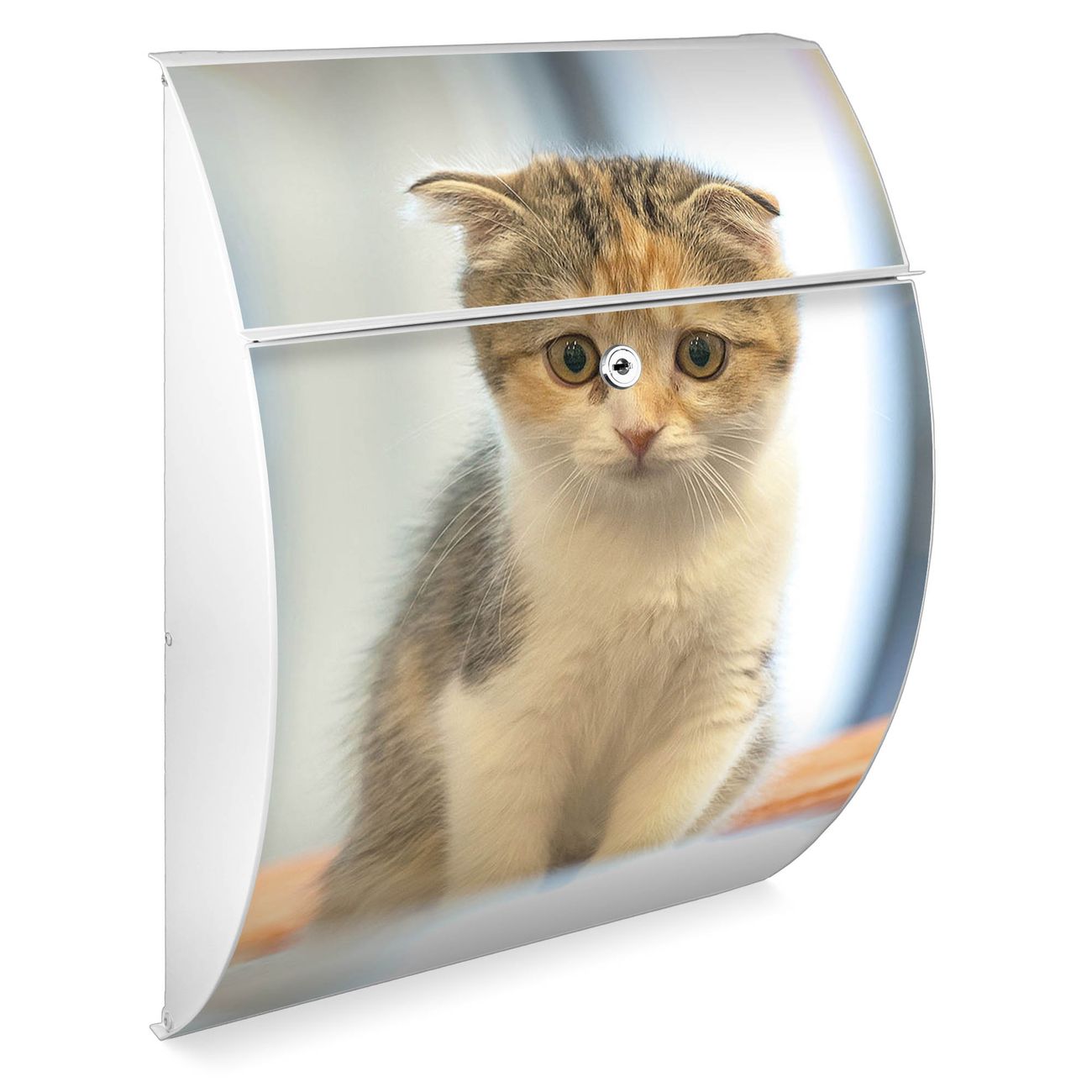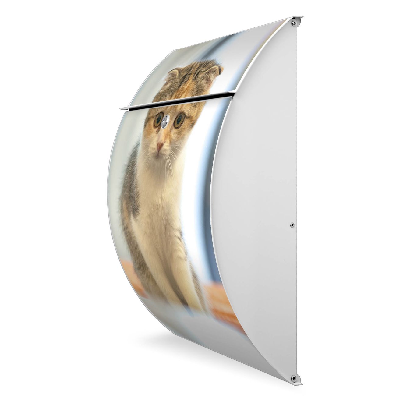 Der weiße Burg Wächter Design Briefkasten mit Motiv Kleine Katze bietet Ihnen mit seinem Fassungsvermögen genügend Platz auch für große A4 Sendungen. Auf Wunsch können Sie bei uns auch den passenden Ständer kaufen und so aus dem Wandbriefkasten einen Standbriefkasten machen.