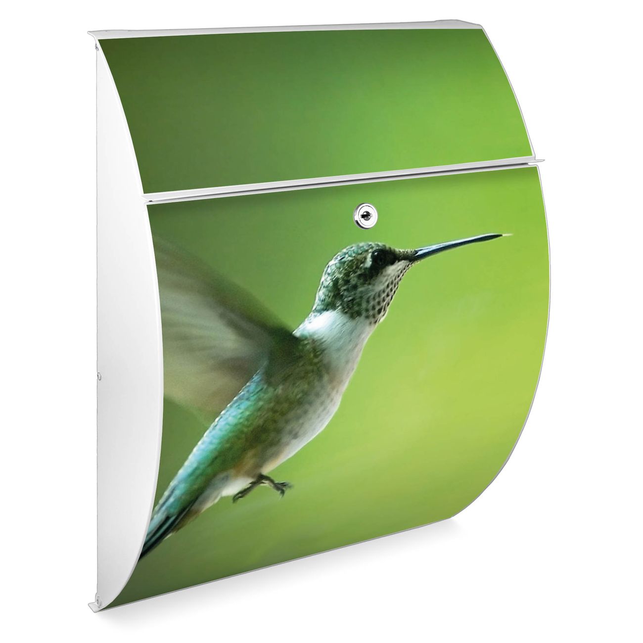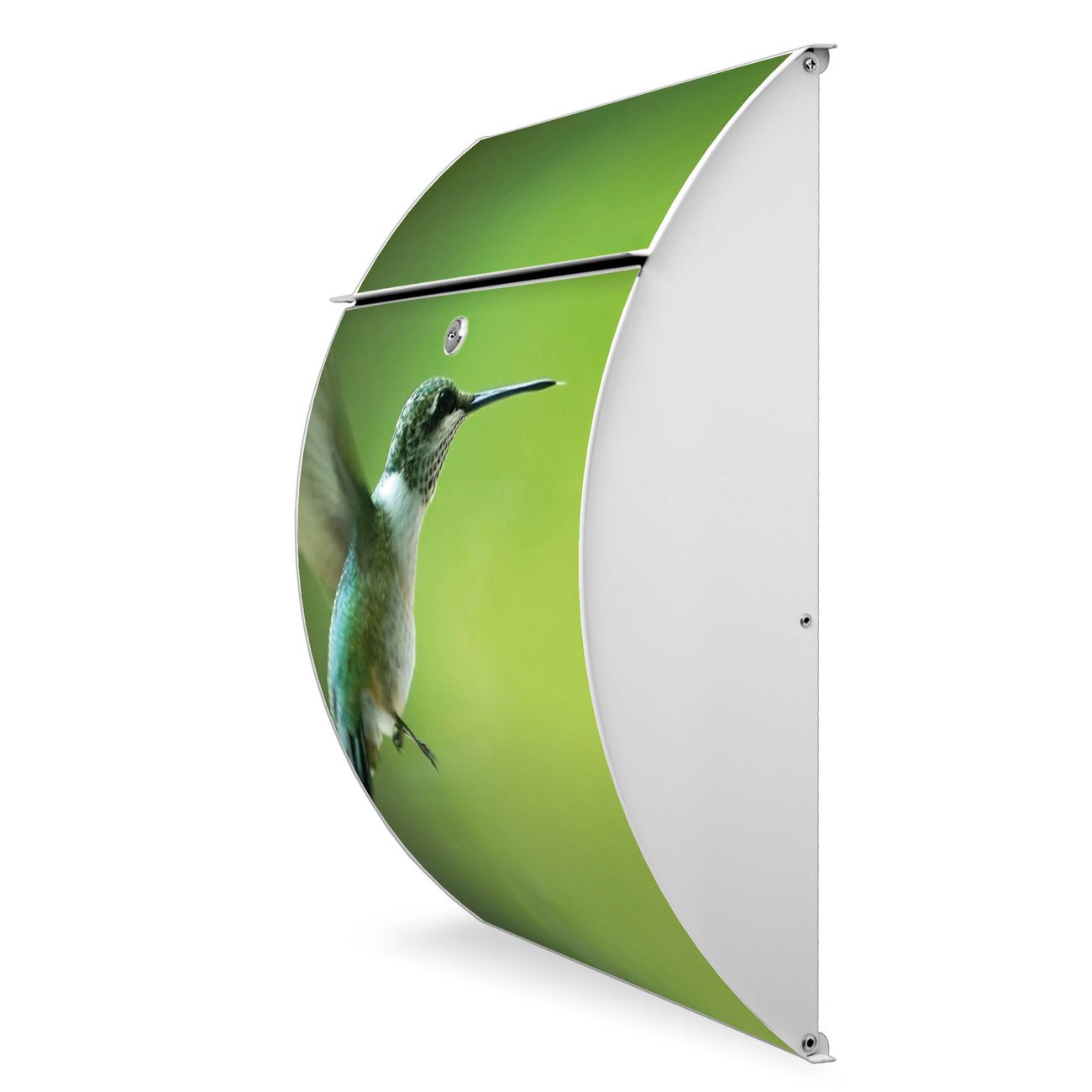 Der weiße Burg Wächter Design Briefkasten mit Motiv Kolibri bietet Ihnen mit seinem Fassungsvermögen genügend Platz auch für große A4 Sendungen. Auf Wunsch können Sie bei uns auch den passenden Ständer kaufen und so aus dem Wandbriefkasten einen Standbriefkasten machen.