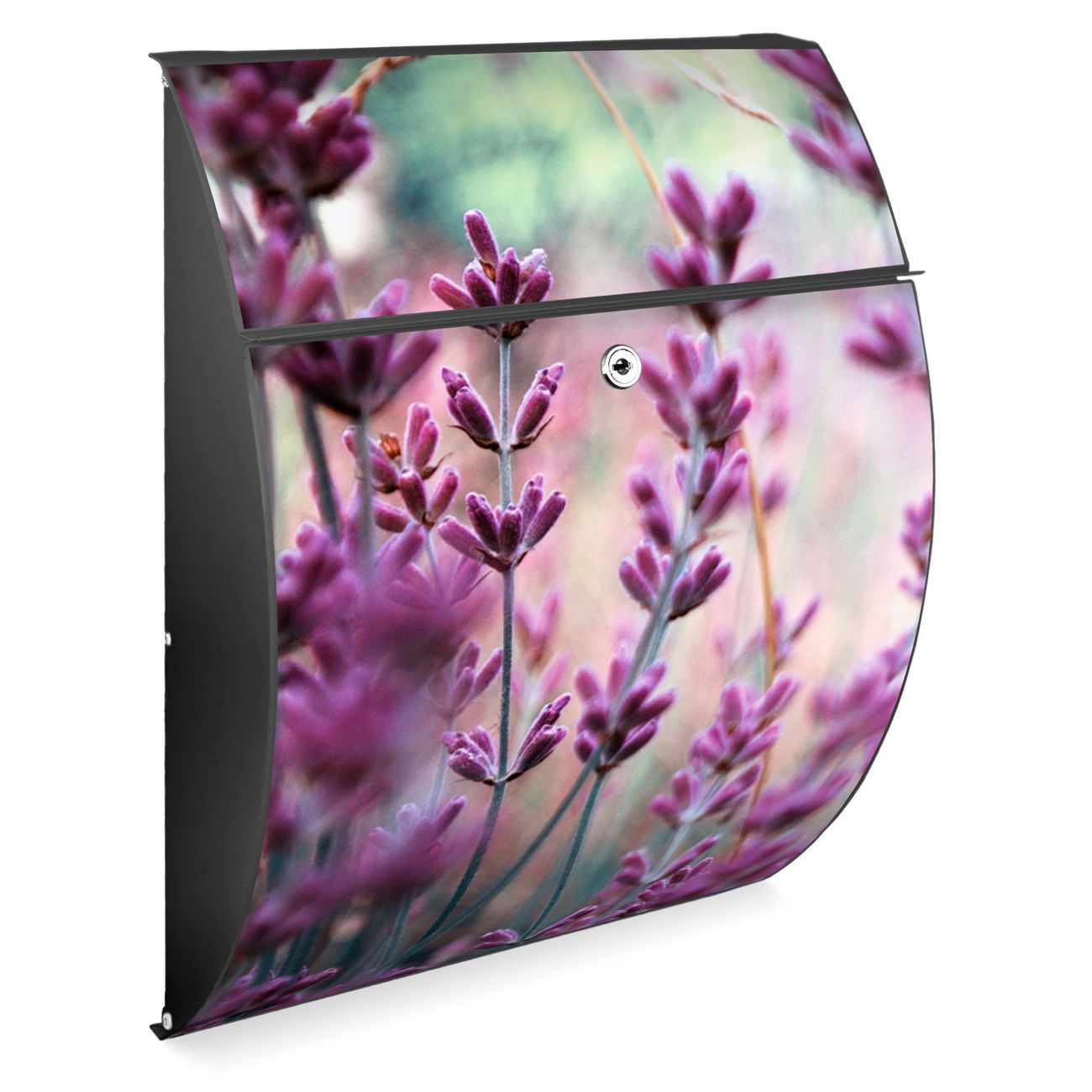 FUNKTION: DESIGN: Das Modell Riviera mit Motiv Lavendel 2 hat ein sehr ansprechendes und zeitloses Design. Heben Sie Sich von der tristen grauen Masse ab, ohne auf Funktionalität zu verzichten. Der integrierte Öffnungsstopp ermöglicht eine einfache Handhabung beim Entnehmen der Post. DETAILS: Der Postkasten besteht aus vollflächig verzinktem Stahl welcher in Anthrazit lackiert wurde. Das Motiv besteht aus einer wetter- und UV-festen Folie, die mit einem Schutzlaminat überzogen ist, durch die Ihren Briefkasten zusätzlich vor Kratzern geschützt ist. Sie erhalten 2 Schlüssel sowie das passende Montagematerial. NUTZEN: Sie können den Briefkasten sowohl als Wandbriefkasten montieren oder einen passenden Ständer kaufen und als Standbriefkasten einbetonieren. Die Größe bietet genügend Platz für Sendungen aller Art, der Einwurf fasst auch größere A4 Sendungen. BANJADO: Ihr Briefkasten wird in Sachsen in einer kleinen Manufaktur von Hand veredelt. Die Motivfolie ist lösungsmittelfrei und schutzlaminiert, dies sorgt für einen langen Halt. Wir legen großen Wert auf die Verbindung von Funktionalität und Design. Sie erhalten Handarbeit aus Sachsen.