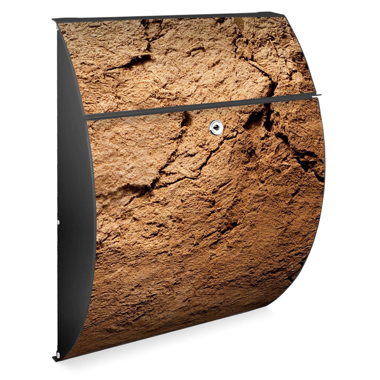 FUNKTION: DESIGN: Das Modell Riviera mit Motiv Lehmboden hat ein sehr ansprechendes und zeitloses Design. Heben Sie Sich von der tristen grauen Masse ab, ohne auf Funktionalität zu verzichten. Der integrierte Öffnungsstopp ermöglicht eine einfache Handhabung beim Entnehmen der Post. DETAILS: Der Postkasten besteht aus vollflächig verzinktem Stahl welcher in Anthrazit lackiert wurde. Das Motiv besteht aus einer wetter- und UV-festen Folie, die mit einem Schutzlaminat überzogen ist, durch die Ihren Briefkasten zusätzlich vor Kratzern geschützt ist. Sie erhalten 2 Schlüssel sowie das passende Montagematerial. NUTZEN: Sie können den Briefkasten sowohl als Wandbriefkasten montieren oder einen passenden Ständer kaufen und als Standbriefkasten einbetonieren. Die Größe bietet genügend Platz für Sendungen aller Art, der Einwurf fasst auch größere A4 Sendungen. BANJADO: Ihr Briefkasten wird in Sachsen in einer kleinen Manufaktur von Hand veredelt. Die Motivfolie ist lösungsmittelfrei und schutzlaminiert, dies sorgt für einen langen Halt. Wir legen großen Wert auf die Verbindung von Funktionalität und Design. Sie erhalten Handarbeit aus Sachsen.