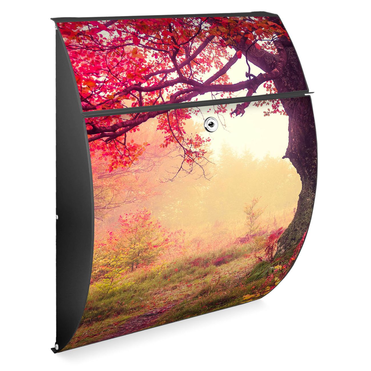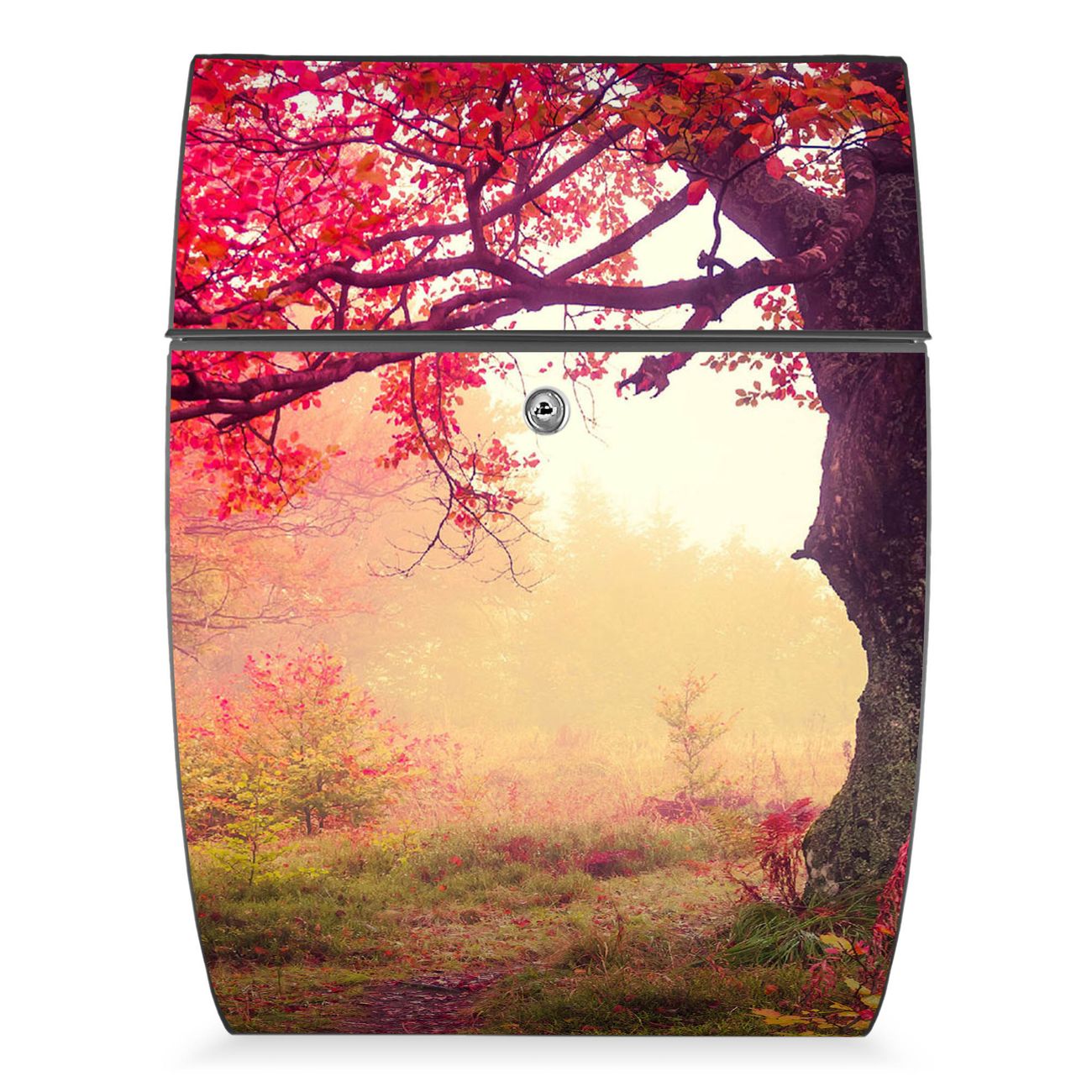 Der Burg Wächter Design Briefkasten mit Motiv Lichtung Im Herbst bietet Ihnen mit seinem Fassungsvermögen genügend Platz auch für große A4 Sendungen. Auf Wunsch können Sie bei uns den passenden Ständer kaufen und so aus dem Wandbriefkasten einen Standbriefkasten machen.
