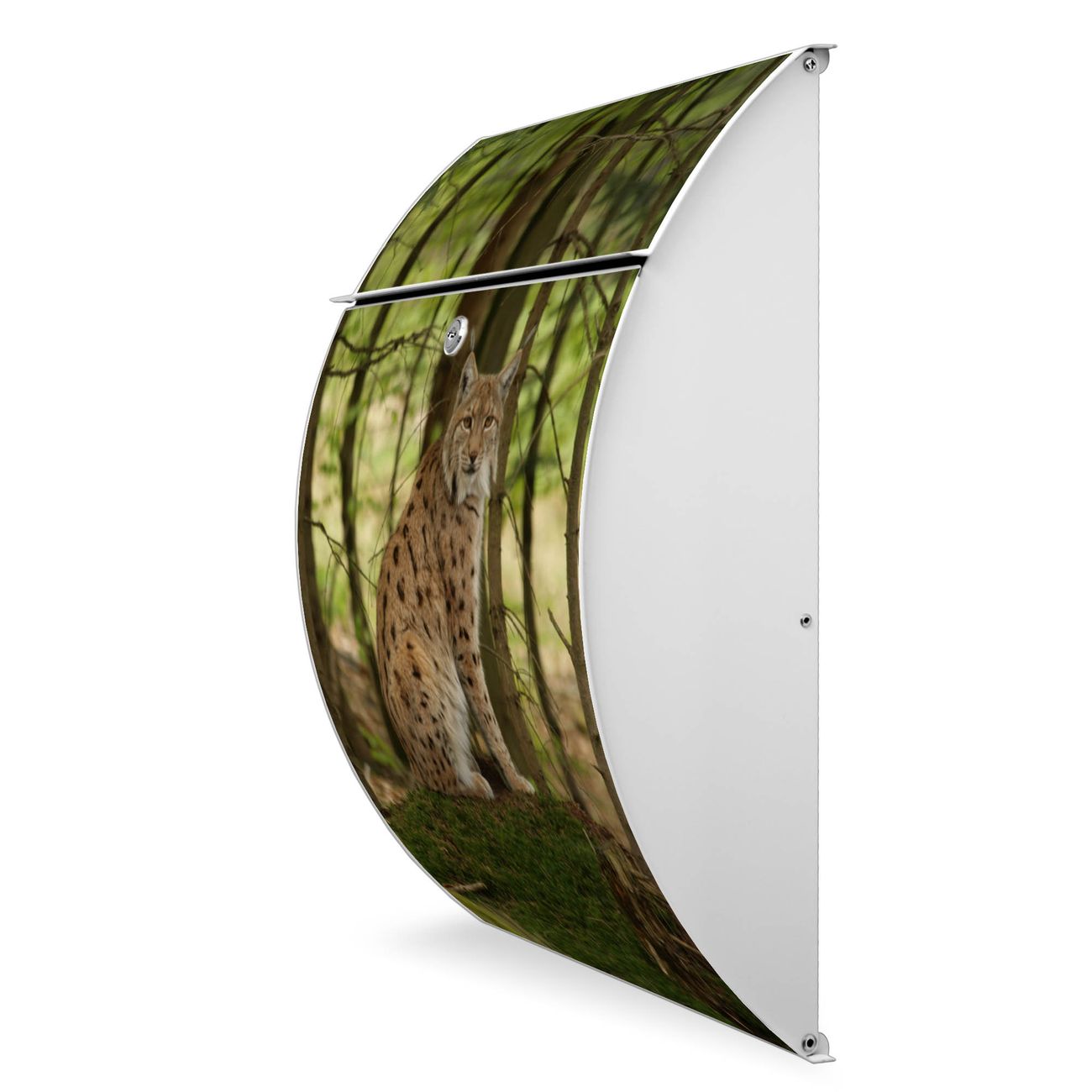 FUNKTION: DESIGN: Das Modell Riviera mit Motiv Luchs hat ein sehr ansprechendes und zeitloses Design. Heben Sie Sich von der tristen grauen Masse ab, ohne auf Funktionalität zu verzichten. Der integrierte Öffnungsstopp ermöglicht eine einfache Handhabung beim Entnehmen der Post. DETAILS: Der Postkasten besteht aus vollflächig verzinktem Stahl welcher in weiß lackiert wurde. Das Motiv besteht aus einer wetter- und UV-festen Folie, die mit einem Schutzlaminat überzogen ist, durch die Ihren Briefkasten zusätzlich vor Kratzern geschützt ist. Sie erhalten 2 Schlüssel sowie das passende Montagematerial. NUTZEN: Sie können den Briefkasten sowohl als Wandbriefkasten montieren oder einen passenden Ständer kaufen und als Standbriefkasten einbetonieren. Die Größe bietet genügend Platz für Sendungen aller Art, der Einwurf fasst auch größere A4 Sendungen. BANJADO: Ihr Briefkasten wird in Sachsen in einer kleinen Manufaktur von Hand veredelt. Die Motivfolie ist lösungsmittelfrei und schutzlaminiert, dies sorgt für einen langen Halt. Wir legen großen Wert auf die Verbindung von Funktionalität und Design. Sie erhalten Handarbeit aus Sachsen.