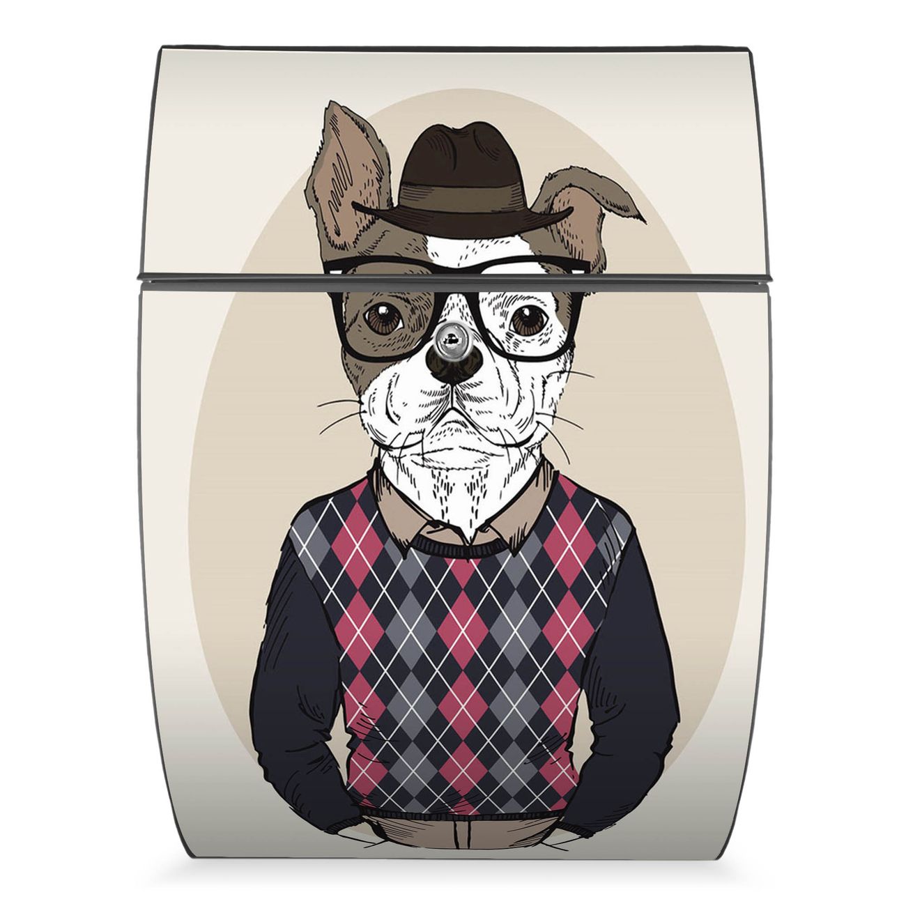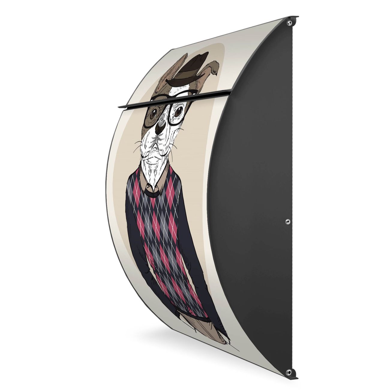 FUNKTION: DESIGN: Das Modell Riviera mit Motiv Ludger hat ein sehr ansprechendes und zeitloses Design. Heben Sie Sich von der tristen grauen Masse ab, ohne auf Funktionalität zu verzichten. Der integrierte Öffnungsstopp ermöglicht eine einfache Handhabung beim Entnehmen der Post. DETAILS: Der Postkasten besteht aus vollflächig verzinktem Stahl welcher in Anthrazit lackiert wurde. Das Motiv besteht aus einer wetter- und UV-festen Folie, die mit einem Schutzlaminat überzogen ist, durch die Ihren Briefkasten zusätzlich vor Kratzern geschützt ist. Sie erhalten 2 Schlüssel sowie das passende Montagematerial. NUTZEN: Sie können den Briefkasten sowohl als Wandbriefkasten montieren oder einen passenden Ständer kaufen und als Standbriefkasten einbetonieren. Die Größe bietet genügend Platz für Sendungen aller Art, der Einwurf fasst auch größere A4 Sendungen. BANJADO: Ihr Briefkasten wird in Sachsen in einer kleinen Manufaktur von Hand veredelt. Die Motivfolie ist lösungsmittelfrei und schutzlaminiert, dies sorgt für einen langen Halt. Wir legen großen Wert auf die Verbindung von Funktionalität und Design. Sie erhalten Handarbeit aus Sachsen.