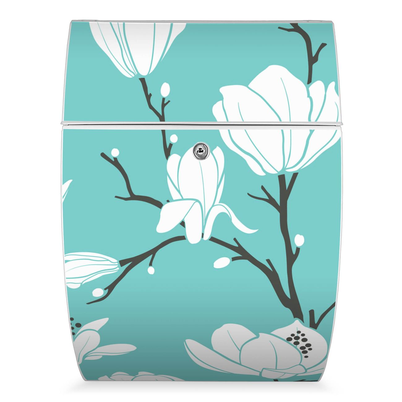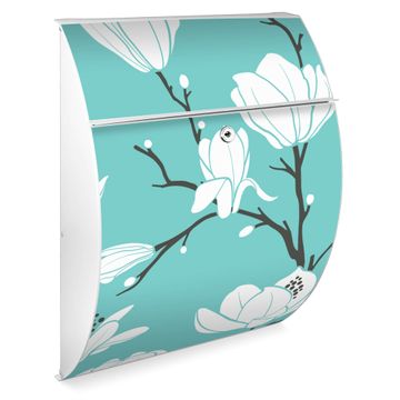 Der weiße Burg Wächter Design Briefkasten mit Motiv Magnolien bietet Ihnen mit seinem Fassungsvermögen genügend Platz auch für große A4 Sendungen. Auf Wunsch können Sie bei uns auch den passenden Ständer kaufen und so aus dem Wandbriefkasten einen Standbriefkasten machen.