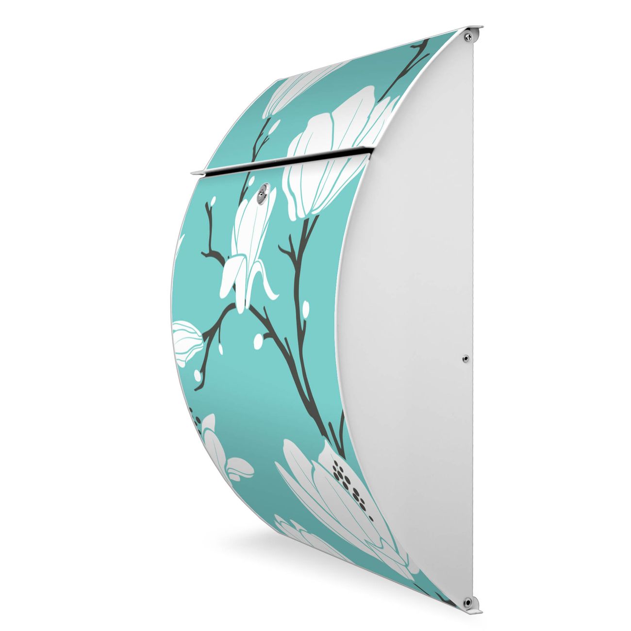 FUNKTION: DESIGN: Das Modell Riviera mit Motiv Magnolien hat ein sehr ansprechendes und zeitloses Design. Heben Sie Sich von der tristen grauen Masse ab, ohne auf Funktionalität zu verzichten. Der integrierte Öffnungsstopp ermöglicht eine einfache Handhabung beim Entnehmen der Post. DETAILS: Der Postkasten besteht aus vollflächig verzinktem Stahl welcher in weiß lackiert wurde. Das Motiv besteht aus einer wetter- und UV-festen Folie, die mit einem Schutzlaminat überzogen ist, durch die Ihren Briefkasten zusätzlich vor Kratzern geschützt ist. Sie erhalten 2 Schlüssel sowie das passende Montagematerial. NUTZEN: Sie können den Briefkasten sowohl als Wandbriefkasten montieren oder einen passenden Ständer kaufen und als Standbriefkasten einbetonieren. Die Größe bietet genügend Platz für Sendungen aller Art, der Einwurf fasst auch größere A4 Sendungen. BANJADO: Ihr Briefkasten wird in Sachsen in einer kleinen Manufaktur von Hand veredelt. Die Motivfolie ist lösungsmittelfrei und schutzlaminiert, dies sorgt für einen langen Halt. Wir legen großen Wert auf die Verbindung von Funktionalität und Design. Sie erhalten Handarbeit aus Sachsen.
