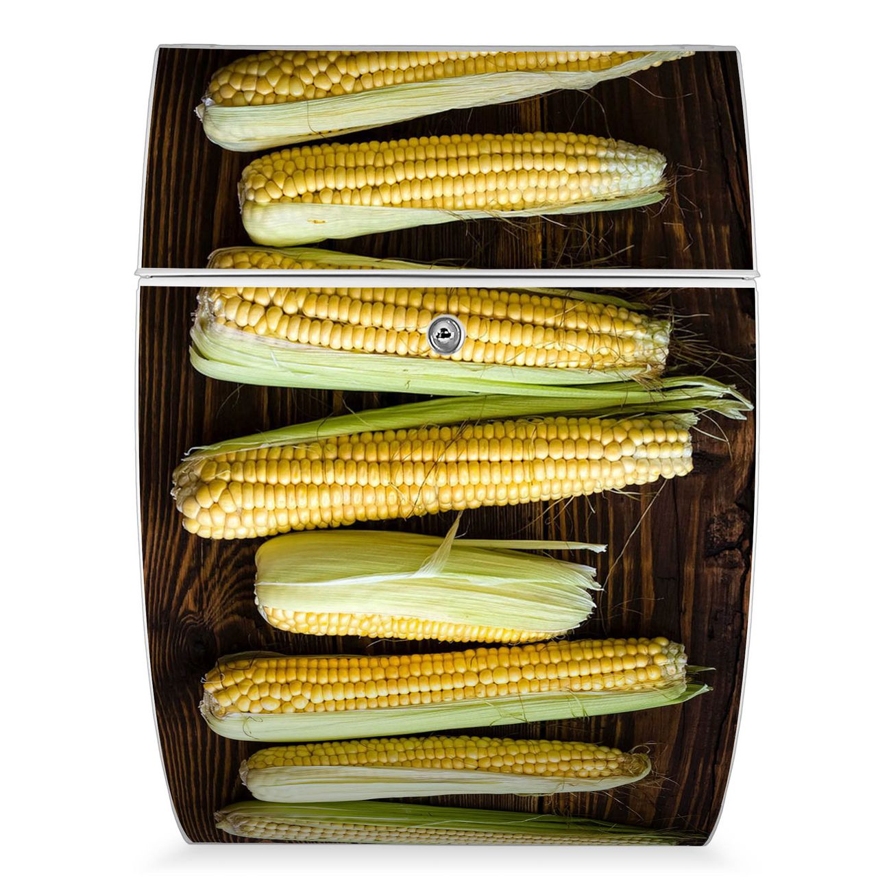 FUNKTION: DESIGN: Das Modell Riviera mit Motiv Maiskolben hat ein sehr ansprechendes und zeitloses Design. Heben Sie Sich von der tristen grauen Masse ab, ohne auf Funktionalität zu verzichten. Der integrierte Öffnungsstopp ermöglicht eine einfache Handhabung beim Entnehmen der Post. DETAILS: Der Postkasten besteht aus vollflächig verzinktem Stahl welcher in weiß lackiert wurde. Das Motiv besteht aus einer wetter- und UV-festen Folie, die mit einem Schutzlaminat überzogen ist, durch die Ihren Briefkasten zusätzlich vor Kratzern geschützt ist. Sie erhalten 2 Schlüssel sowie das passende Montagematerial. NUTZEN: Sie können den Briefkasten sowohl als Wandbriefkasten montieren oder einen passenden Ständer kaufen und als Standbriefkasten einbetonieren. Die Größe bietet genügend Platz für Sendungen aller Art, der Einwurf fasst auch größere A4 Sendungen. BANJADO: Ihr Briefkasten wird in Sachsen in einer kleinen Manufaktur von Hand veredelt. Die Motivfolie ist lösungsmittelfrei und schutzlaminiert, dies sorgt für einen langen Halt. Wir legen großen Wert auf die Verbindung von Funktionalität und Design. Sie erhalten Handarbeit aus Sachsen.