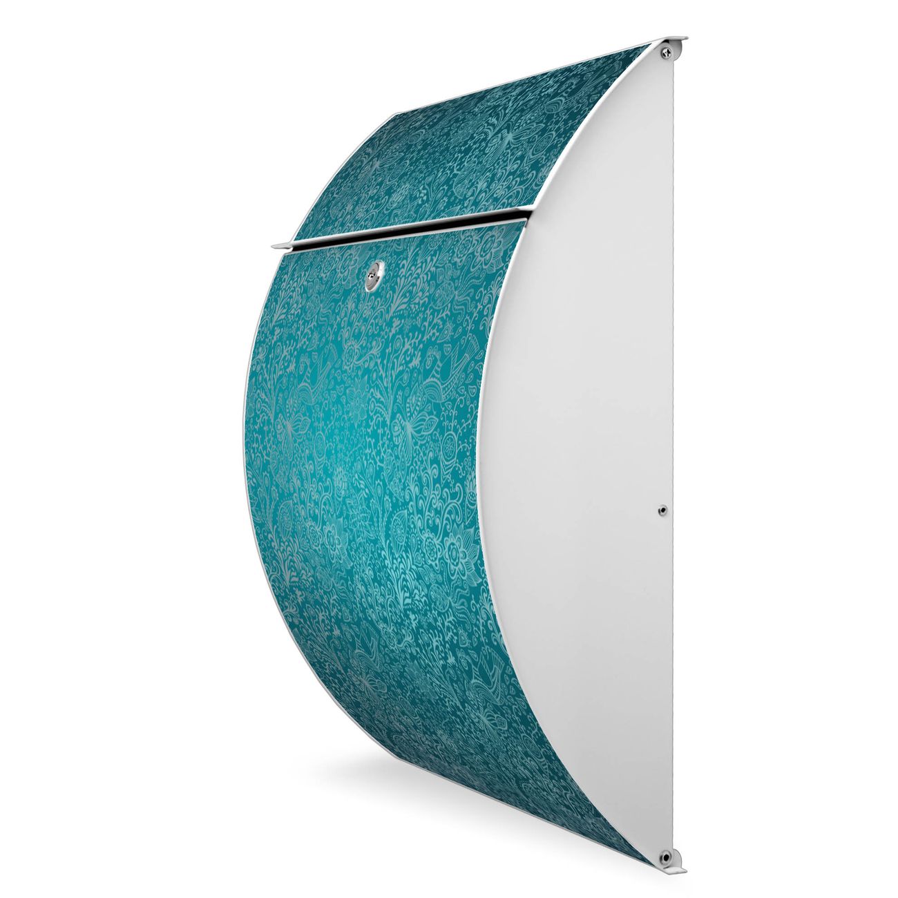 FUNKTION: DESIGN: Das Modell Riviera mit Motiv Mandala Landschaft hat ein sehr ansprechendes und zeitloses Design. Heben Sie Sich von der tristen grauen Masse ab, ohne auf Funktionalität zu verzichten. Der integrierte Öffnungsstopp ermöglicht eine einfache Handhabung beim Entnehmen der Post. DETAILS: Der Postkasten besteht aus vollflächig verzinktem Stahl welcher in weiß lackiert wurde. Das Motiv besteht aus einer wetter- und UV-festen Folie, die mit einem Schutzlaminat überzogen ist, durch die Ihren Briefkasten zusätzlich vor Kratzern geschützt ist. Sie erhalten 2 Schlüssel sowie das passende Montagematerial. NUTZEN: Sie können den Briefkasten sowohl als Wandbriefkasten montieren oder einen passenden Ständer kaufen und als Standbriefkasten einbetonieren. Die Größe bietet genügend Platz für Sendungen aller Art, der Einwurf fasst auch größere A4 Sendungen. BANJADO: Ihr Briefkasten wird in Sachsen in einer kleinen Manufaktur von Hand veredelt. Die Motivfolie ist lösungsmittelfrei und schutzlaminiert, dies sorgt für einen langen Halt. Wir legen großen Wert auf die Verbindung von Funktionalität und Design. Sie erhalten Handarbeit aus Sachsen.
