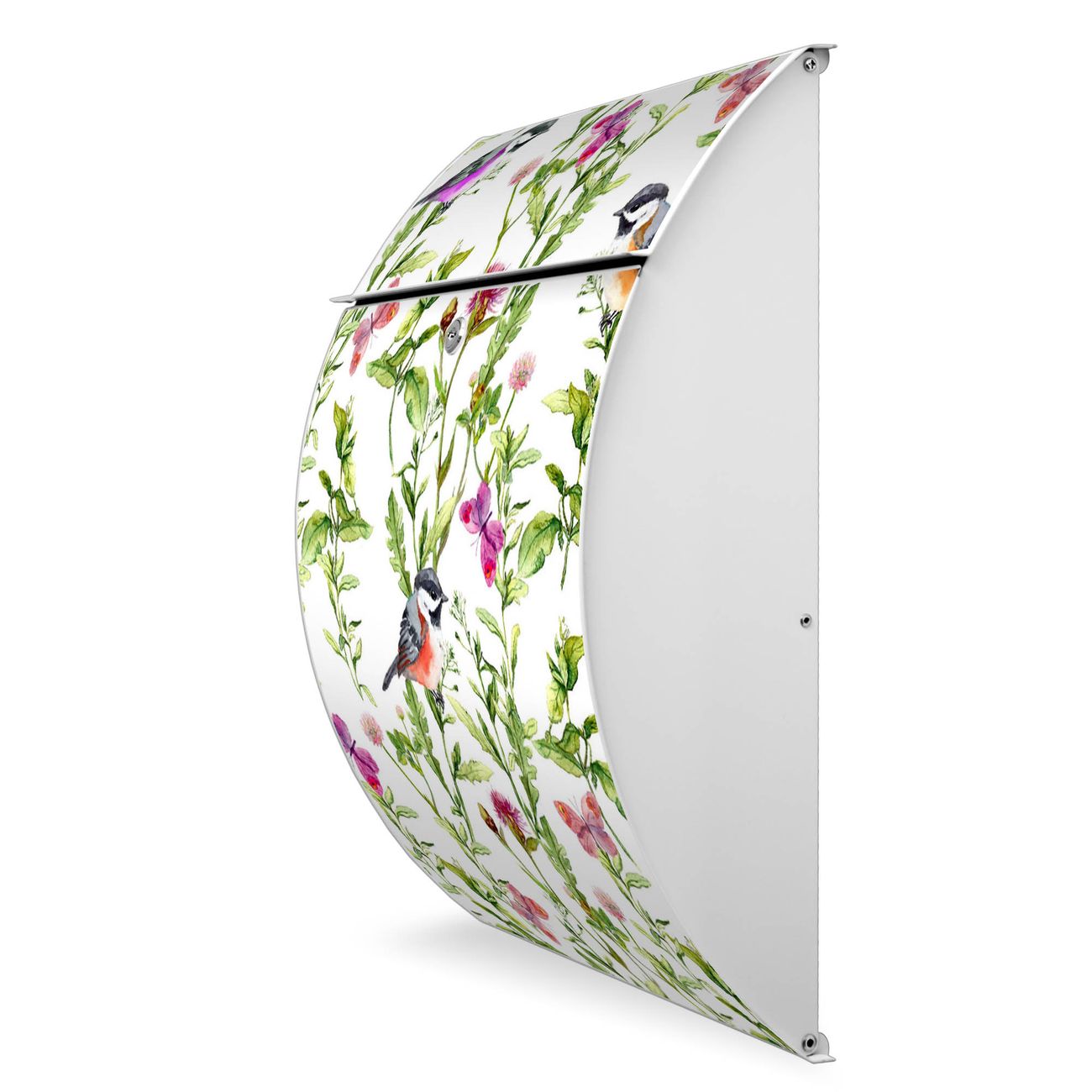 FUNKTION: DESIGN: Das Modell Riviera mit Motiv Meisen im Klee hat ein sehr ansprechendes und zeitloses Design. Heben Sie Sich von der tristen grauen Masse ab, ohne auf Funktionalität zu verzichten. Der integrierte Öffnungsstopp ermöglicht eine einfache Handhabung beim Entnehmen der Post. DETAILS: Der Postkasten besteht aus vollflächig verzinktem Stahl welcher in weiß lackiert wurde. Das Motiv besteht aus einer wetter- und UV-festen Folie, die mit einem Schutzlaminat überzogen ist, durch die Ihren Briefkasten zusätzlich vor Kratzern geschützt ist. Sie erhalten 2 Schlüssel sowie das passende Montagematerial. NUTZEN: Sie können den Briefkasten sowohl als Wandbriefkasten montieren oder einen passenden Ständer kaufen und als Standbriefkasten einbetonieren. Die Größe bietet genügend Platz für Sendungen aller Art, der Einwurf fasst auch größere A4 Sendungen. BANJADO: Ihr Briefkasten wird in Sachsen in einer kleinen Manufaktur von Hand veredelt. Die Motivfolie ist lösungsmittelfrei und schutzlaminiert, dies sorgt für einen langen Halt. Wir legen großen Wert auf die Verbindung von Funktionalität und Design. Sie erhalten Handarbeit aus Sachsen.