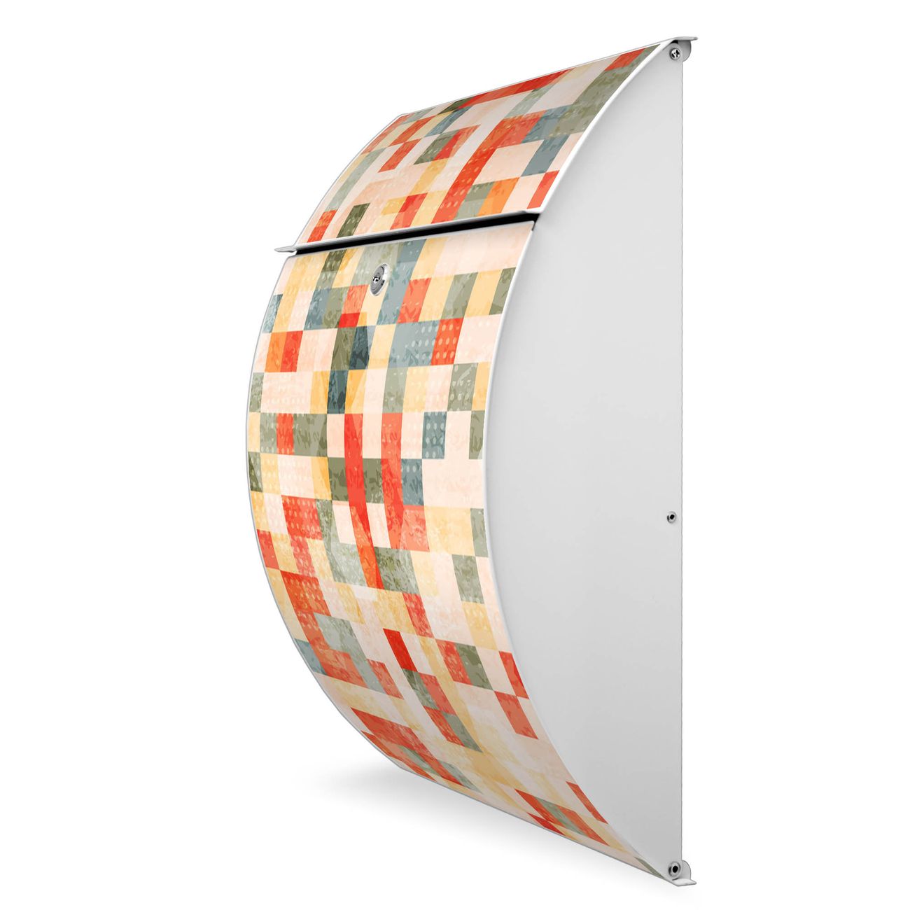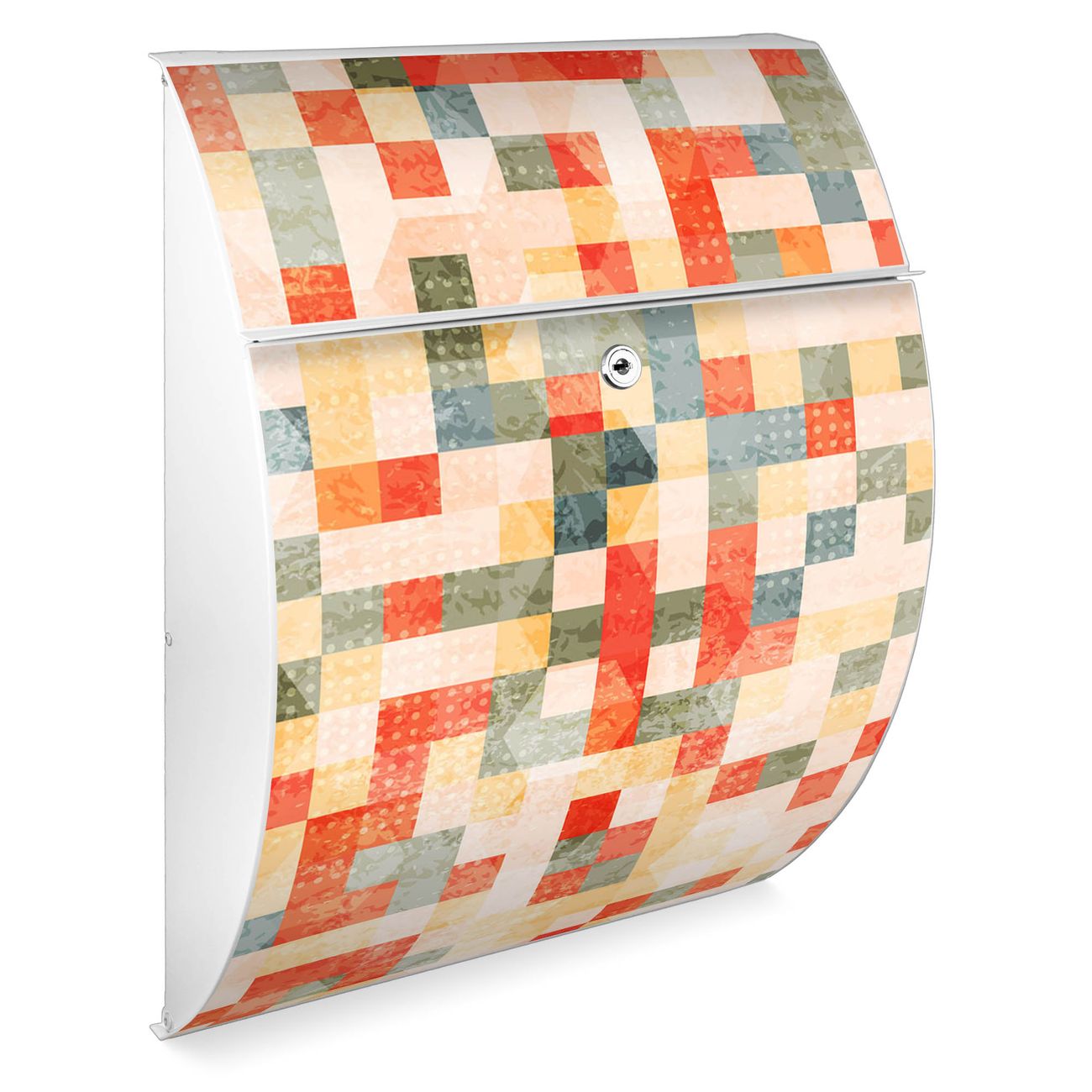 Der weiße Burg Wächter Design Briefkasten mit Motiv Mosaik Rot bietet Ihnen mit seinem Fassungsvermögen genügend Platz auch für große A4 Sendungen. Auf Wunsch können Sie bei uns auch den passenden Ständer kaufen und so aus dem Wandbriefkasten einen Standbriefkasten machen.