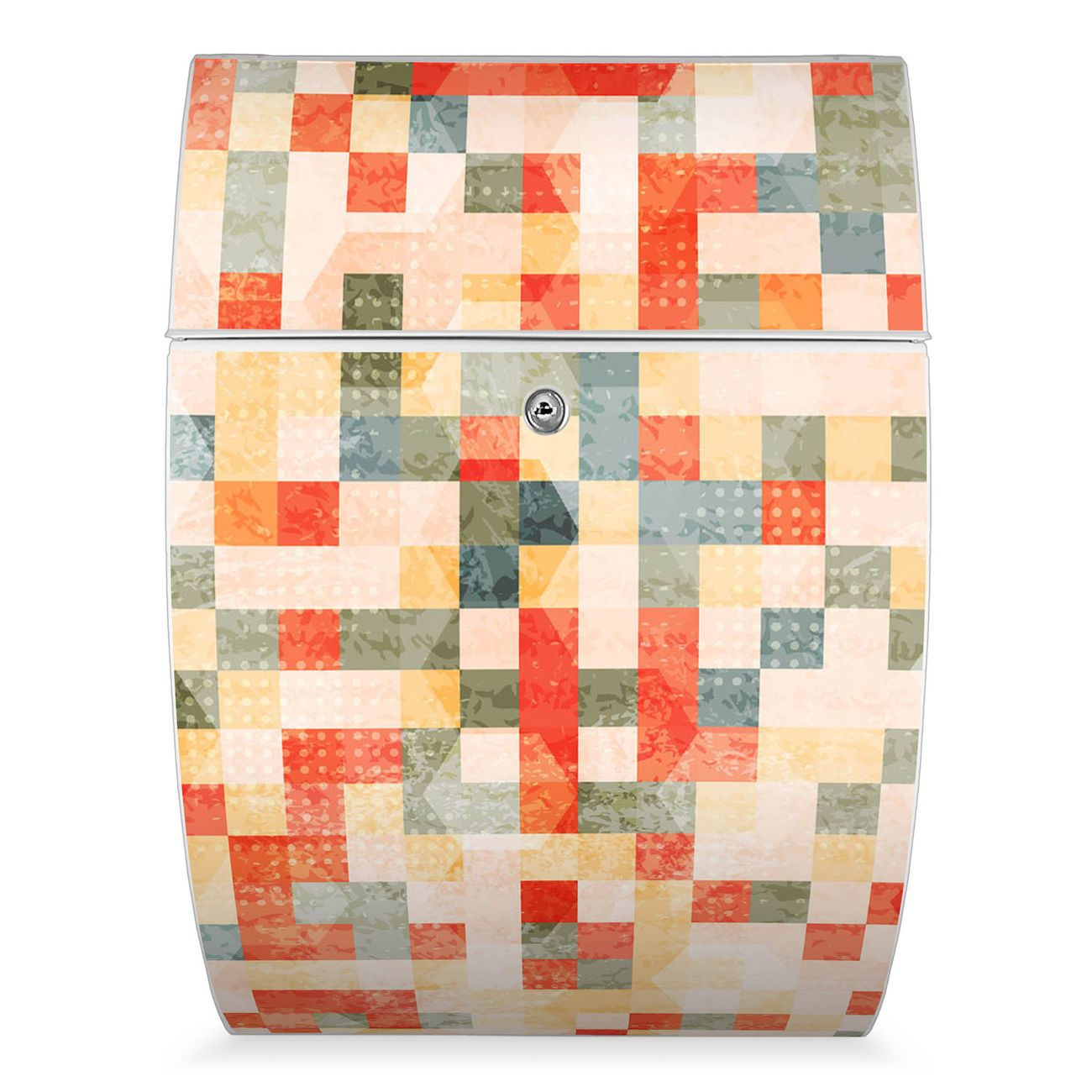 FUNKTION: DESIGN: Das Modell Riviera mit Motiv Mosaik Rot hat ein sehr ansprechendes und zeitloses Design. Heben Sie Sich von der tristen grauen Masse ab, ohne auf Funktionalität zu verzichten. Der integrierte Öffnungsstopp ermöglicht eine einfache Handhabung beim Entnehmen der Post. DETAILS: Der Postkasten besteht aus vollflächig verzinktem Stahl welcher in weiß lackiert wurde. Das Motiv besteht aus einer wetter- und UV-festen Folie, die mit einem Schutzlaminat überzogen ist, durch die Ihren Briefkasten zusätzlich vor Kratzern geschützt ist. Sie erhalten 2 Schlüssel sowie das passende Montagematerial. NUTZEN: Sie können den Briefkasten sowohl als Wandbriefkasten montieren oder einen passenden Ständer kaufen und als Standbriefkasten einbetonieren. Die Größe bietet genügend Platz für Sendungen aller Art, der Einwurf fasst auch größere A4 Sendungen. BANJADO: Ihr Briefkasten wird in Sachsen in einer kleinen Manufaktur von Hand veredelt. Die Motivfolie ist lösungsmittelfrei und schutzlaminiert, dies sorgt für einen langen Halt. Wir legen großen Wert auf die Verbindung von Funktionalität und Design. Sie erhalten Handarbeit aus Sachsen.