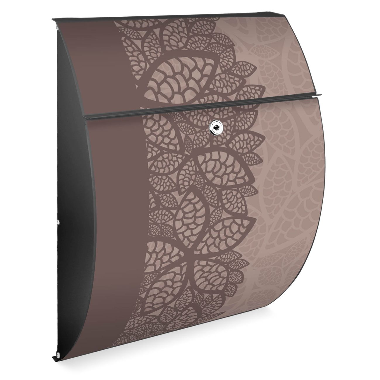Der Burg Wächter Design Briefkasten mit Motiv Muster Blätter bietet Ihnen mit seinem Fassungsvermögen genügend Platz auch für große A4 Sendungen. Auf Wunsch können Sie bei uns den passenden Ständer kaufen und so aus dem Wandbriefkasten einen Standbriefkasten machen.