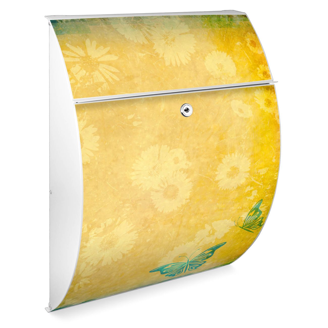 Der weiße Burg Wächter Design Briefkasten mit Motiv Muster Sommer bietet Ihnen mit seinem Fassungsvermögen genügend Platz auch für große A4 Sendungen. Auf Wunsch können Sie bei uns auch den passenden Ständer kaufen und so aus dem Wandbriefkasten einen Standbriefkasten machen.