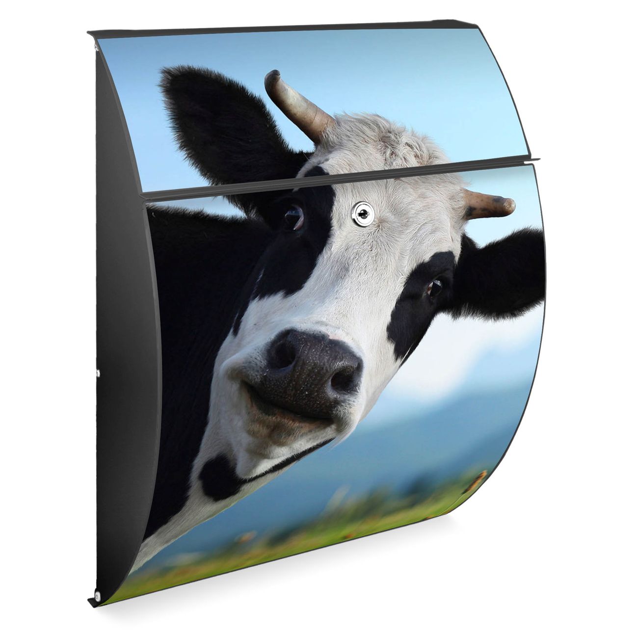 FUNKTION: DESIGN: Das Modell Riviera mit Motiv Neugierig hat ein sehr ansprechendes und zeitloses Design. Heben Sie Sich von der tristen grauen Masse ab, ohne auf Funktionalität zu verzichten. Der integrierte Öffnungsstopp ermöglicht eine einfache Handhabung beim Entnehmen der Post. DETAILS: Der Postkasten besteht aus vollflächig verzinktem Stahl welcher in Anthrazit lackiert wurde. Das Motiv besteht aus einer wetter- und UV-festen Folie, die mit einem Schutzlaminat überzogen ist, durch die Ihren Briefkasten zusätzlich vor Kratzern geschützt ist. Sie erhalten 2 Schlüssel sowie das passende Montagematerial. NUTZEN: Sie können den Briefkasten sowohl als Wandbriefkasten montieren oder einen passenden Ständer kaufen und als Standbriefkasten einbetonieren. Die Größe bietet genügend Platz für Sendungen aller Art, der Einwurf fasst auch größere A4 Sendungen. BANJADO: Ihr Briefkasten wird in Sachsen in einer kleinen Manufaktur von Hand veredelt. Die Motivfolie ist lösungsmittelfrei und schutzlaminiert, dies sorgt für einen langen Halt. Wir legen großen Wert auf die Verbindung von Funktionalität und Design. Sie erhalten Handarbeit aus Sachsen.