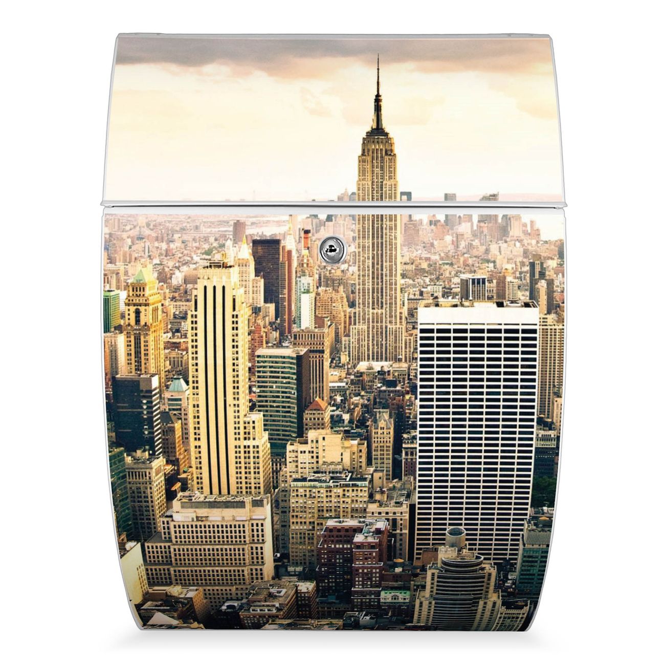 Der weiße Burg Wächter Design Briefkasten mit Motiv New York City bietet Ihnen mit seinem Fassungsvermögen genügend Platz auch für große A4 Sendungen. Auf Wunsch können Sie bei uns auch den passenden Ständer kaufen und so aus dem Wandbriefkasten einen Standbriefkasten machen.