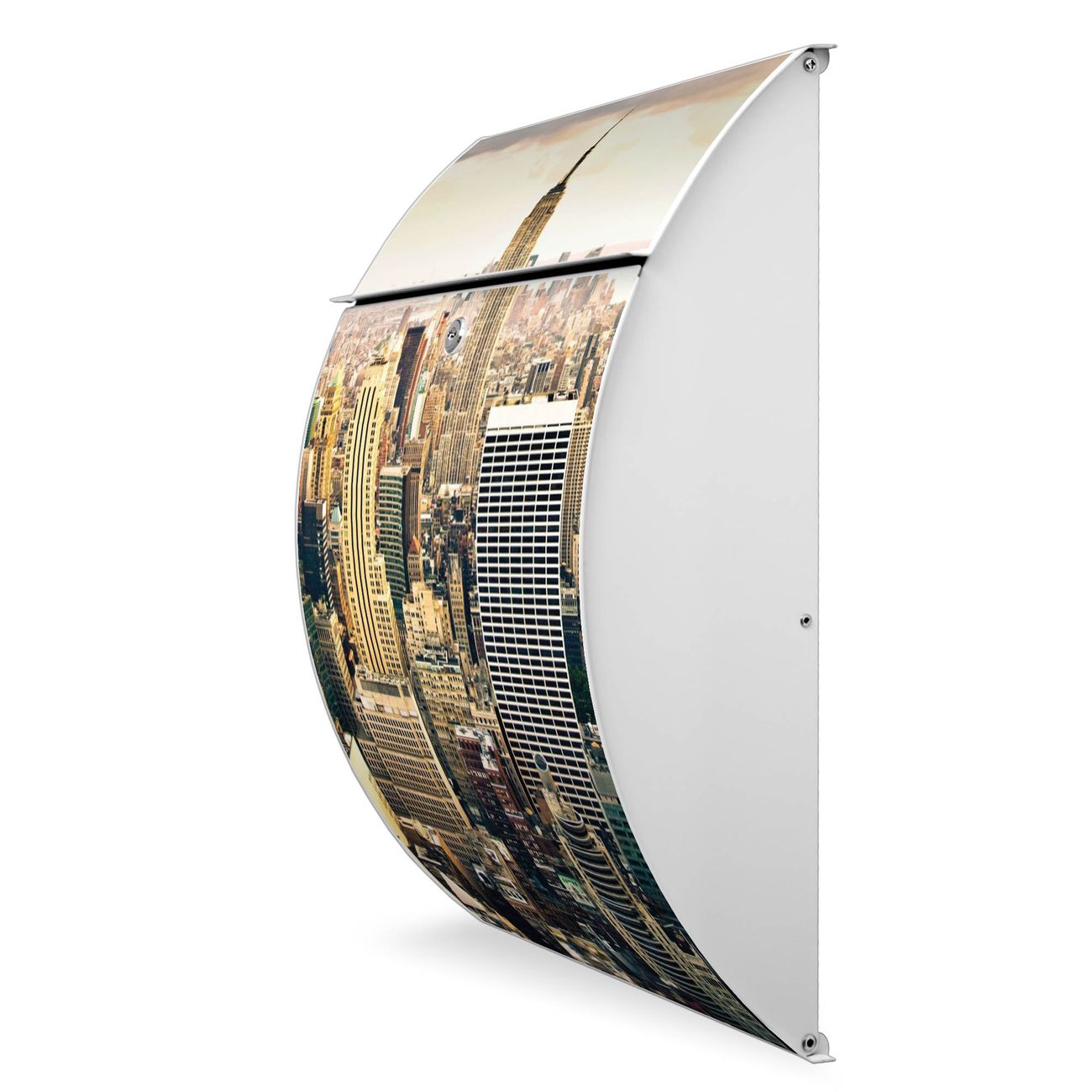 FUNKTION: DESIGN: Das Modell Riviera mit Motiv New York City hat ein sehr ansprechendes und zeitloses Design. Heben Sie Sich von der tristen grauen Masse ab, ohne auf Funktionalität zu verzichten. Der integrierte Öffnungsstopp ermöglicht eine einfache Handhabung beim Entnehmen der Post. DETAILS: Der Postkasten besteht aus vollflächig verzinktem Stahl welcher in weiß lackiert wurde. Das Motiv besteht aus einer wetter- und UV-festen Folie, die mit einem Schutzlaminat überzogen ist, durch die Ihren Briefkasten zusätzlich vor Kratzern geschützt ist. Sie erhalten 2 Schlüssel sowie das passende Montagematerial. NUTZEN: Sie können den Briefkasten sowohl als Wandbriefkasten montieren oder einen passenden Ständer kaufen und als Standbriefkasten einbetonieren. Die Größe bietet genügend Platz für Sendungen aller Art, der Einwurf fasst auch größere A4 Sendungen. BANJADO: Ihr Briefkasten wird in Sachsen in einer kleinen Manufaktur von Hand veredelt. Die Motivfolie ist lösungsmittelfrei und schutzlaminiert, dies sorgt für einen langen Halt. Wir legen großen Wert auf die Verbindung von Funktionalität und Design. Sie erhalten Handarbeit aus Sachsen.