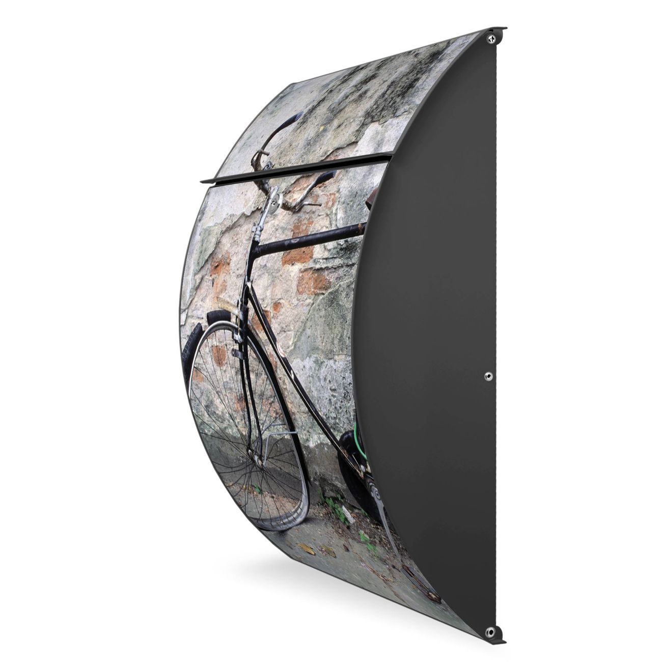 FUNKTION: DESIGN: Das Modell Riviera mit Motiv Nostalgie Rad hat ein sehr ansprechendes und zeitloses Design. Heben Sie Sich von der tristen grauen Masse ab, ohne auf Funktionalität zu verzichten. Der integrierte Öffnungsstopp ermöglicht eine einfache Handhabung beim Entnehmen der Post. DETAILS: Der Postkasten besteht aus vollflächig verzinktem Stahl welcher in Anthrazit lackiert wurde. Das Motiv besteht aus einer wetter- und UV-festen Folie, die mit einem Schutzlaminat überzogen ist, durch die Ihren Briefkasten zusätzlich vor Kratzern geschützt ist. Sie erhalten 2 Schlüssel sowie das passende Montagematerial. NUTZEN: Sie können den Briefkasten sowohl als Wandbriefkasten montieren oder einen passenden Ständer kaufen und als Standbriefkasten einbetonieren. Die Größe bietet genügend Platz für Sendungen aller Art, der Einwurf fasst auch größere A4 Sendungen. BANJADO: Ihr Briefkasten wird in Sachsen in einer kleinen Manufaktur von Hand veredelt. Die Motivfolie ist lösungsmittelfrei und schutzlaminiert, dies sorgt für einen langen Halt. Wir legen großen Wert auf die Verbindung von Funktionalität und Design. Sie erhalten Handarbeit aus Sachsen.