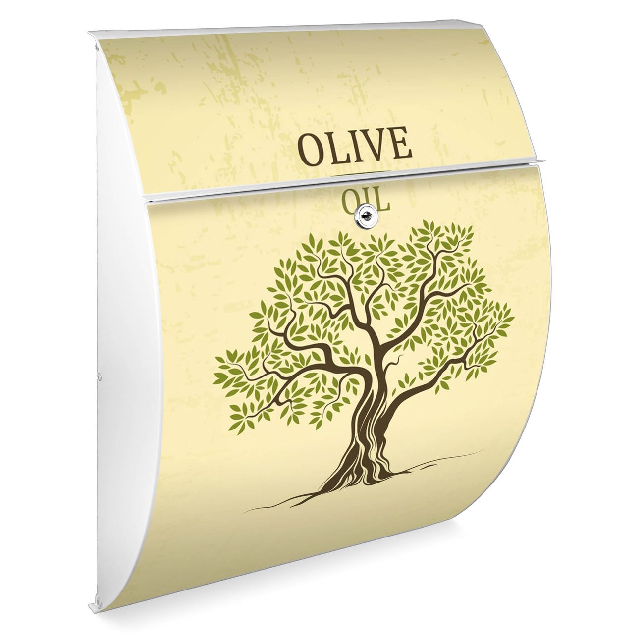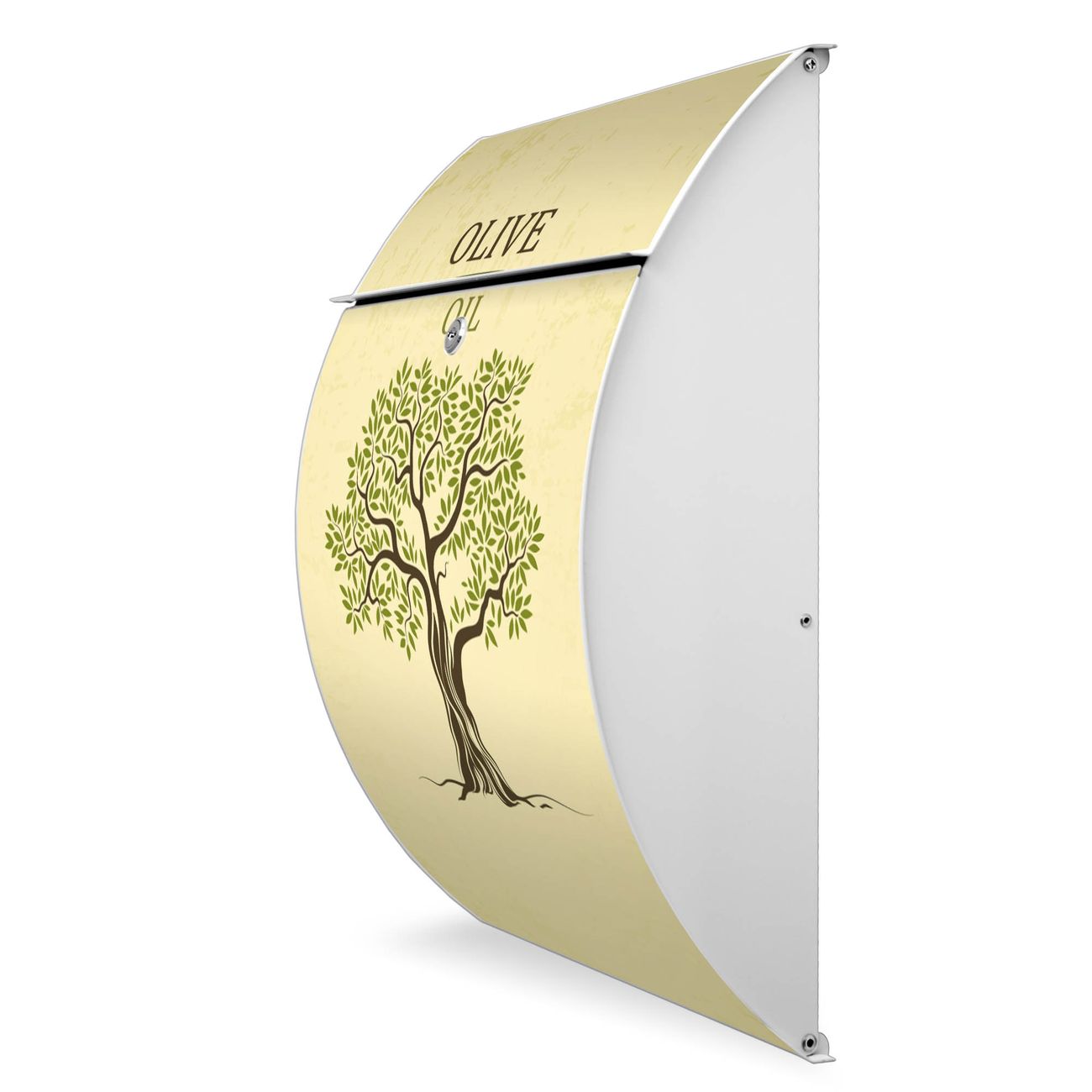 Der weiße Burg Wächter Design Briefkasten mit Motiv Olivenbaum bietet Ihnen mit seinem Fassungsvermögen genügend Platz auch für große A4 Sendungen. Auf Wunsch können Sie bei uns auch den passenden Ständer kaufen und so aus dem Wandbriefkasten einen Standbriefkasten machen.