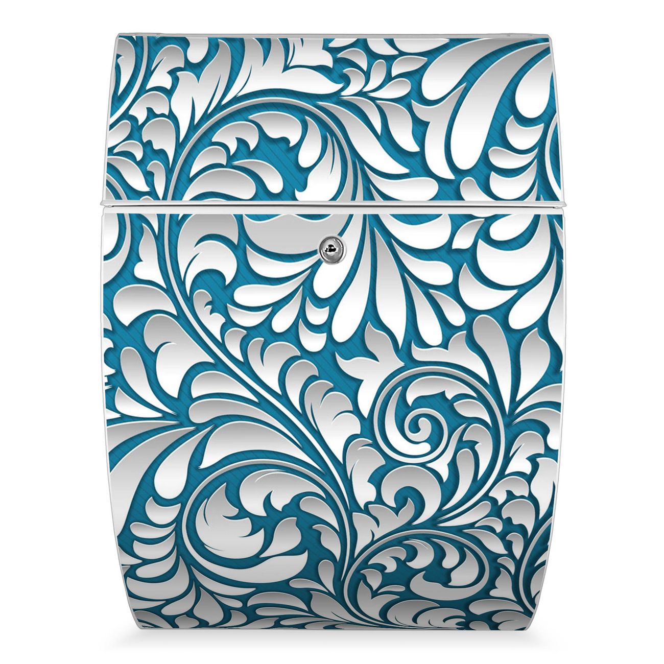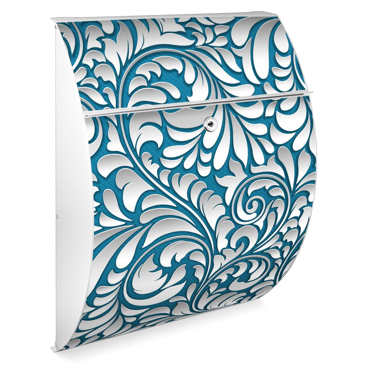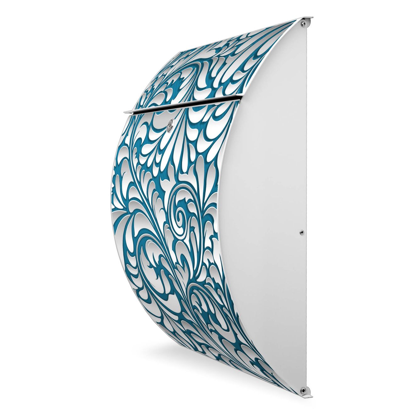 FUNKTION: DESIGN: Das Modell Riviera mit Motiv Opulente Ranke hat ein sehr ansprechendes und zeitloses Design. Heben Sie Sich von der tristen grauen Masse ab, ohne auf Funktionalität zu verzichten. Der integrierte Öffnungsstopp ermöglicht eine einfache Handhabung beim Entnehmen der Post. DETAILS: Der Postkasten besteht aus vollflächig verzinktem Stahl welcher in weiß lackiert wurde. Das Motiv besteht aus einer wetter- und UV-festen Folie, die mit einem Schutzlaminat überzogen ist, durch die Ihren Briefkasten zusätzlich vor Kratzern geschützt ist. Sie erhalten 2 Schlüssel sowie das passende Montagematerial. NUTZEN: Sie können den Briefkasten sowohl als Wandbriefkasten montieren oder einen passenden Ständer kaufen und als Standbriefkasten einbetonieren. Die Größe bietet genügend Platz für Sendungen aller Art, der Einwurf fasst auch größere A4 Sendungen. BANJADO: Ihr Briefkasten wird in Sachsen in einer kleinen Manufaktur von Hand veredelt. Die Motivfolie ist lösungsmittelfrei und schutzlaminiert, dies sorgt für einen langen Halt. Wir legen großen Wert auf die Verbindung von Funktionalität und Design. Sie erhalten Handarbeit aus Sachsen.