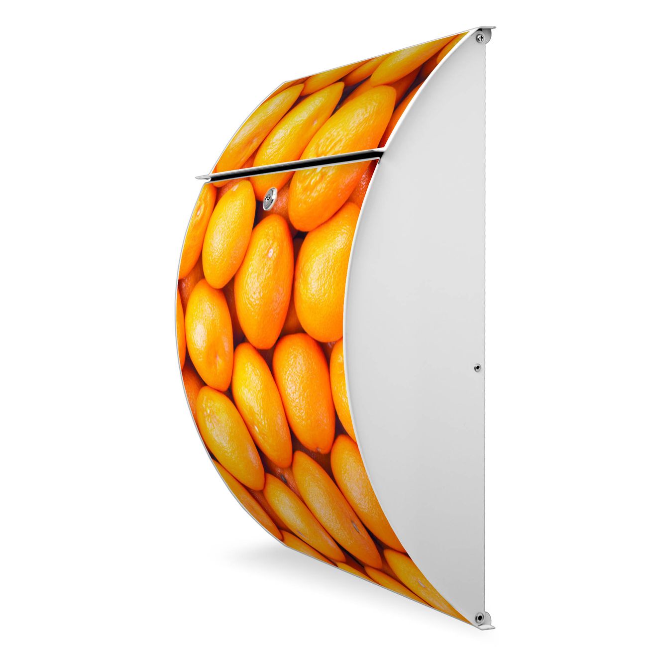 Der weiße Burg Wächter Design Briefkasten mit Motiv Orangen bietet Ihnen mit seinem Fassungsvermögen genügend Platz auch für große A4 Sendungen. Auf Wunsch können Sie bei uns auch den passenden Ständer kaufen und so aus dem Wandbriefkasten einen Standbriefkasten machen.