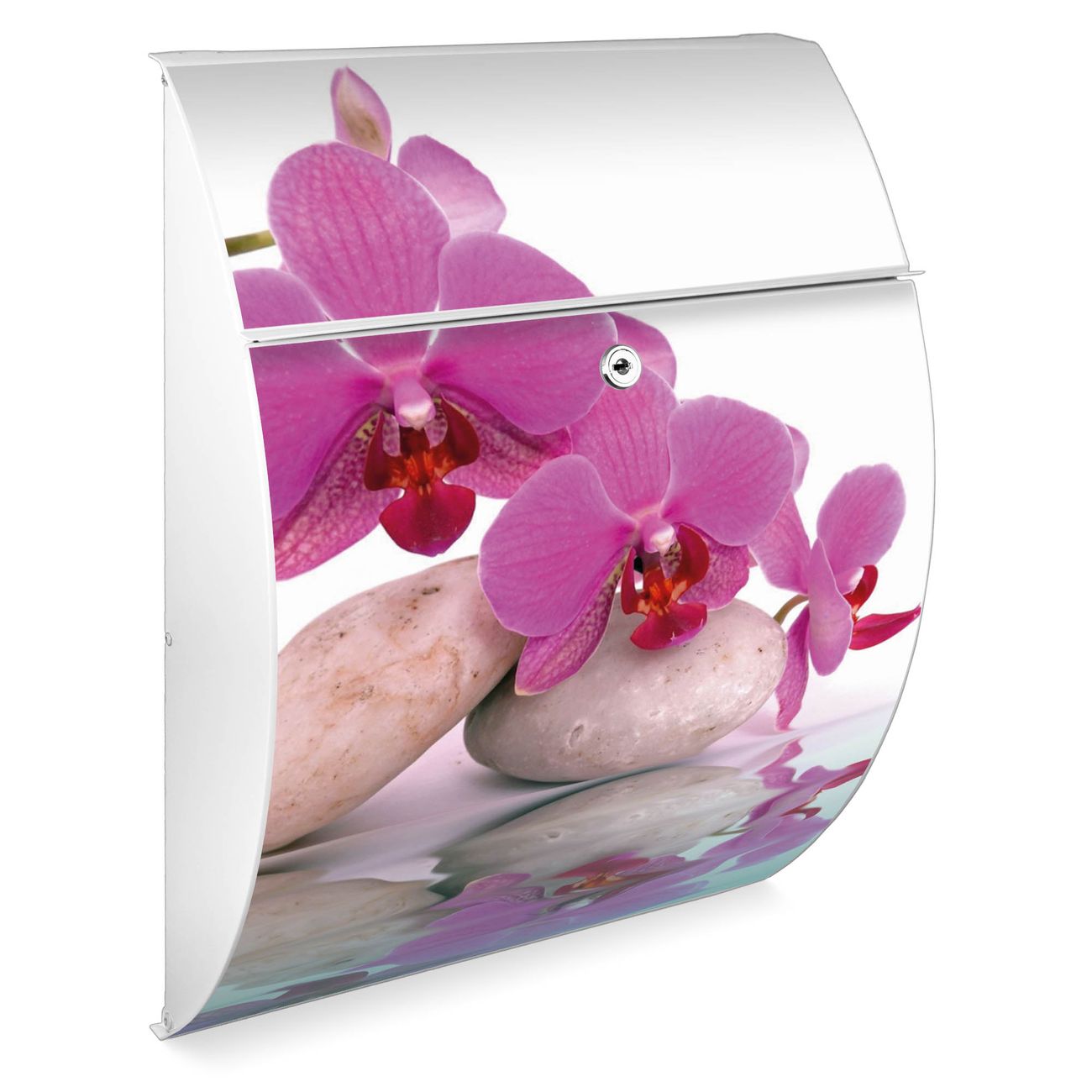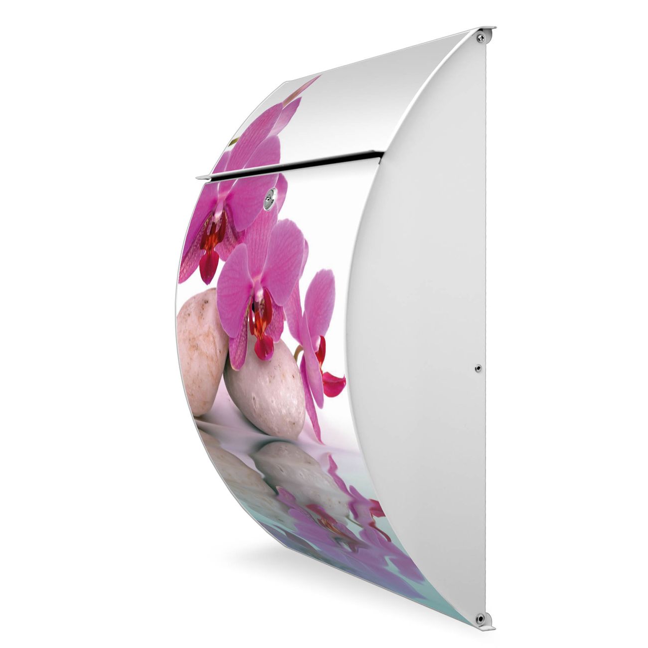 Der weiße Burg Wächter Design Briefkasten mit Motiv Orchidee bietet Ihnen mit seinem Fassungsvermögen genügend Platz auch für große A4 Sendungen. Auf Wunsch können Sie bei uns auch den passenden Ständer kaufen und so aus dem Wandbriefkasten einen Standbriefkasten machen.