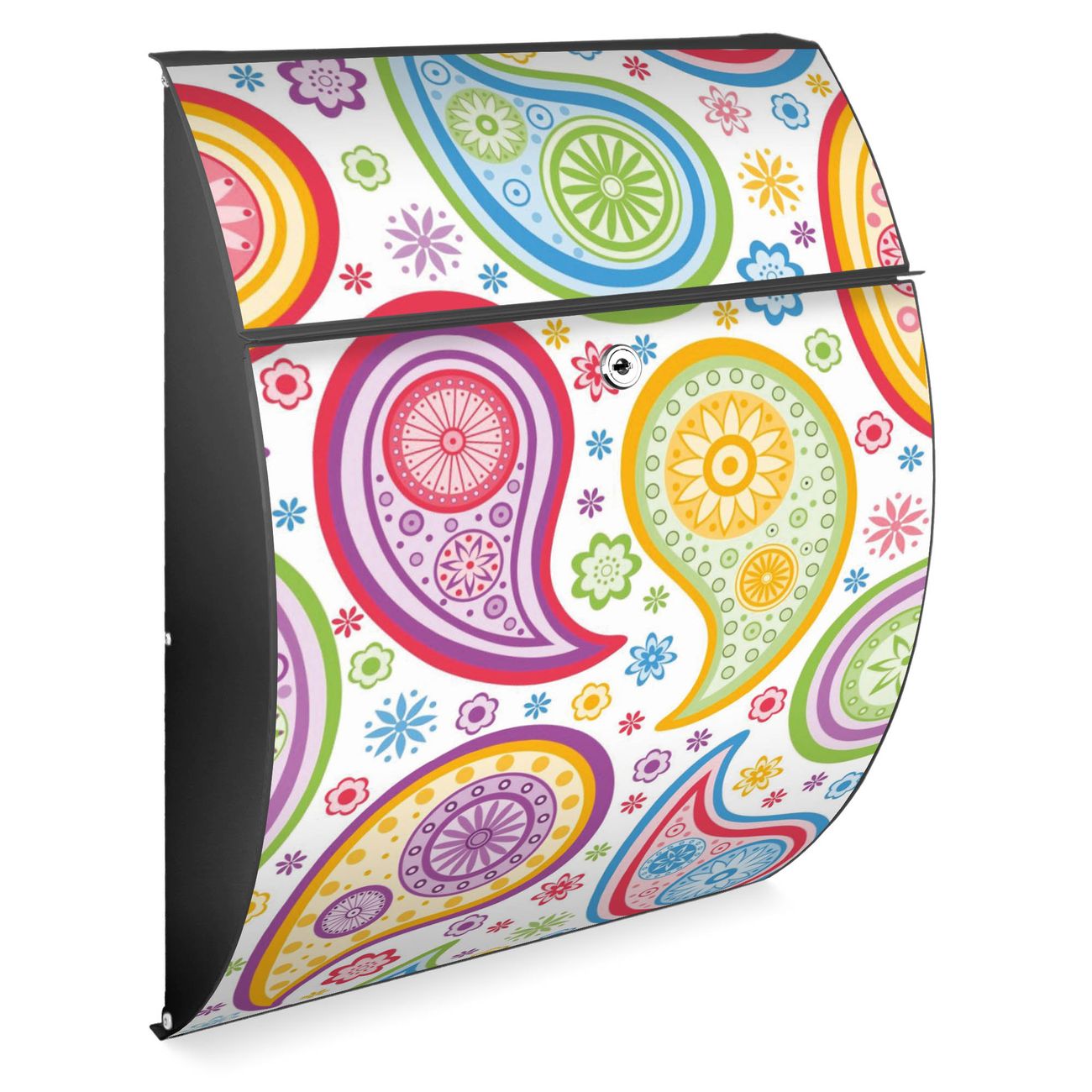 Der Burg Wächter Design Briefkasten mit Motiv Paisley bunt bietet Ihnen mit seinem Fassungsvermögen genügend Platz auch für große A4 Sendungen. Auf Wunsch können Sie bei uns den passenden Ständer kaufen und so aus dem Wandbriefkasten einen Standbriefkasten machen.