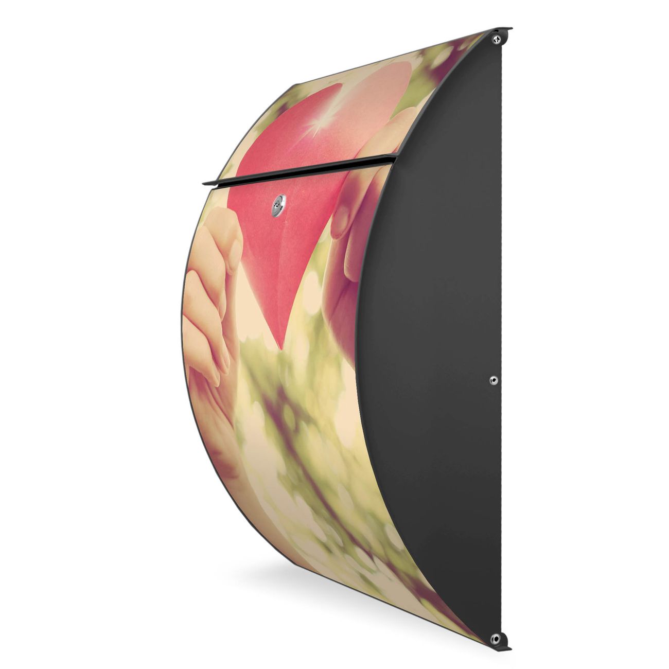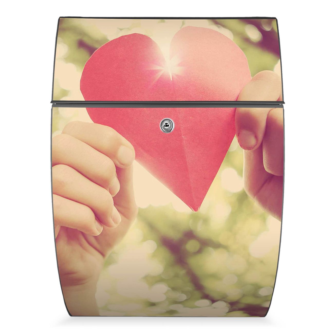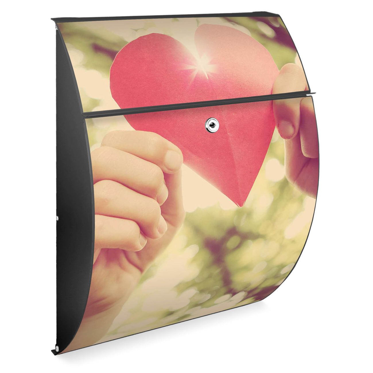 Der Burg Wächter Design Briefkasten mit Motiv Papierherz bietet Ihnen mit seinem Fassungsvermögen genügend Platz auch für große A4 Sendungen. Auf Wunsch können Sie bei uns den passenden Ständer kaufen und so aus dem Wandbriefkasten einen Standbriefkasten machen.