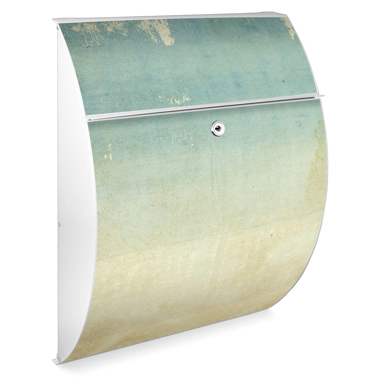FUNKTION: DESIGN: Das Modell Riviera mit Motiv Patina Papier hat ein sehr ansprechendes und zeitloses Design. Heben Sie Sich von der tristen grauen Masse ab, ohne auf Funktionalität zu verzichten. Der integrierte Öffnungsstopp ermöglicht eine einfache Handhabung beim Entnehmen der Post. DETAILS: Der Postkasten besteht aus vollflächig verzinktem Stahl welcher in weiß lackiert wurde. Das Motiv besteht aus einer wetter- und UV-festen Folie, die mit einem Schutzlaminat überzogen ist, durch die Ihren Briefkasten zusätzlich vor Kratzern geschützt ist. Sie erhalten 2 Schlüssel sowie das passende Montagematerial. NUTZEN: Sie können den Briefkasten sowohl als Wandbriefkasten montieren oder einen passenden Ständer kaufen und als Standbriefkasten einbetonieren. Die Größe bietet genügend Platz für Sendungen aller Art, der Einwurf fasst auch größere A4 Sendungen. BANJADO: Ihr Briefkasten wird in Sachsen in einer kleinen Manufaktur von Hand veredelt. Die Motivfolie ist lösungsmittelfrei und schutzlaminiert, dies sorgt für einen langen Halt. Wir legen großen Wert auf die Verbindung von Funktionalität und Design. Sie erhalten Handarbeit aus Sachsen.