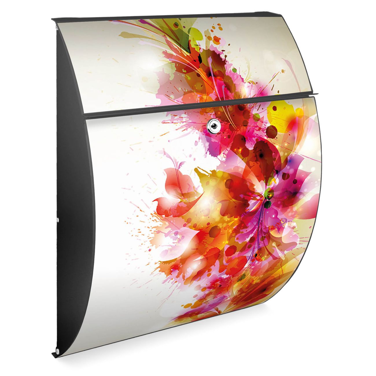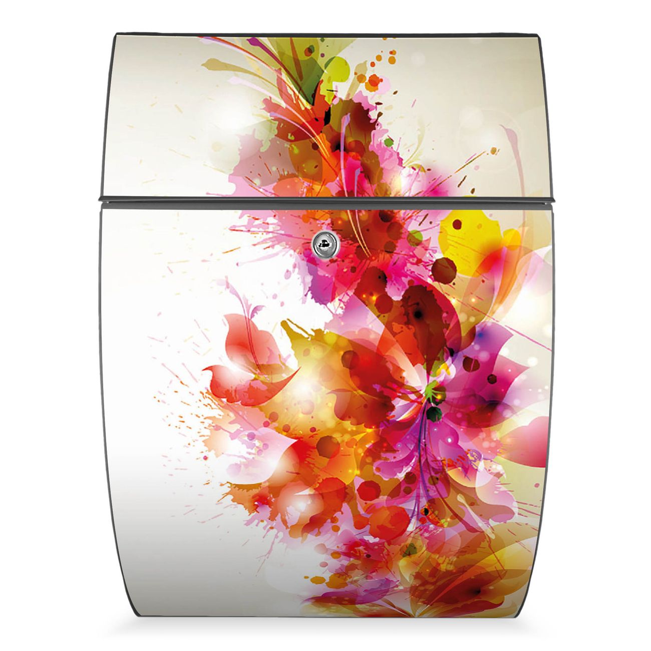 Der Burg Wächter Design Briefkasten mit Motiv Pink Explosion bietet Ihnen mit seinem Fassungsvermögen genügend Platz auch für große A4 Sendungen. Auf Wunsch können Sie bei uns den passenden Ständer kaufen und so aus dem Wandbriefkasten einen Standbriefkasten machen.