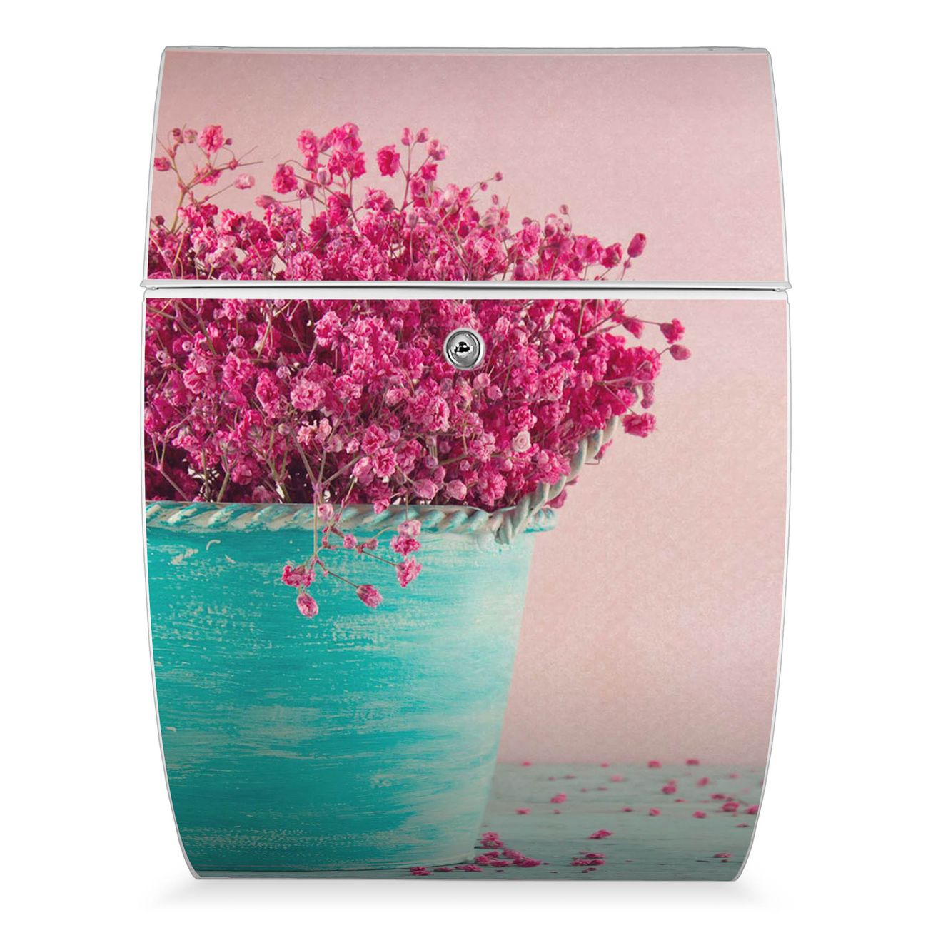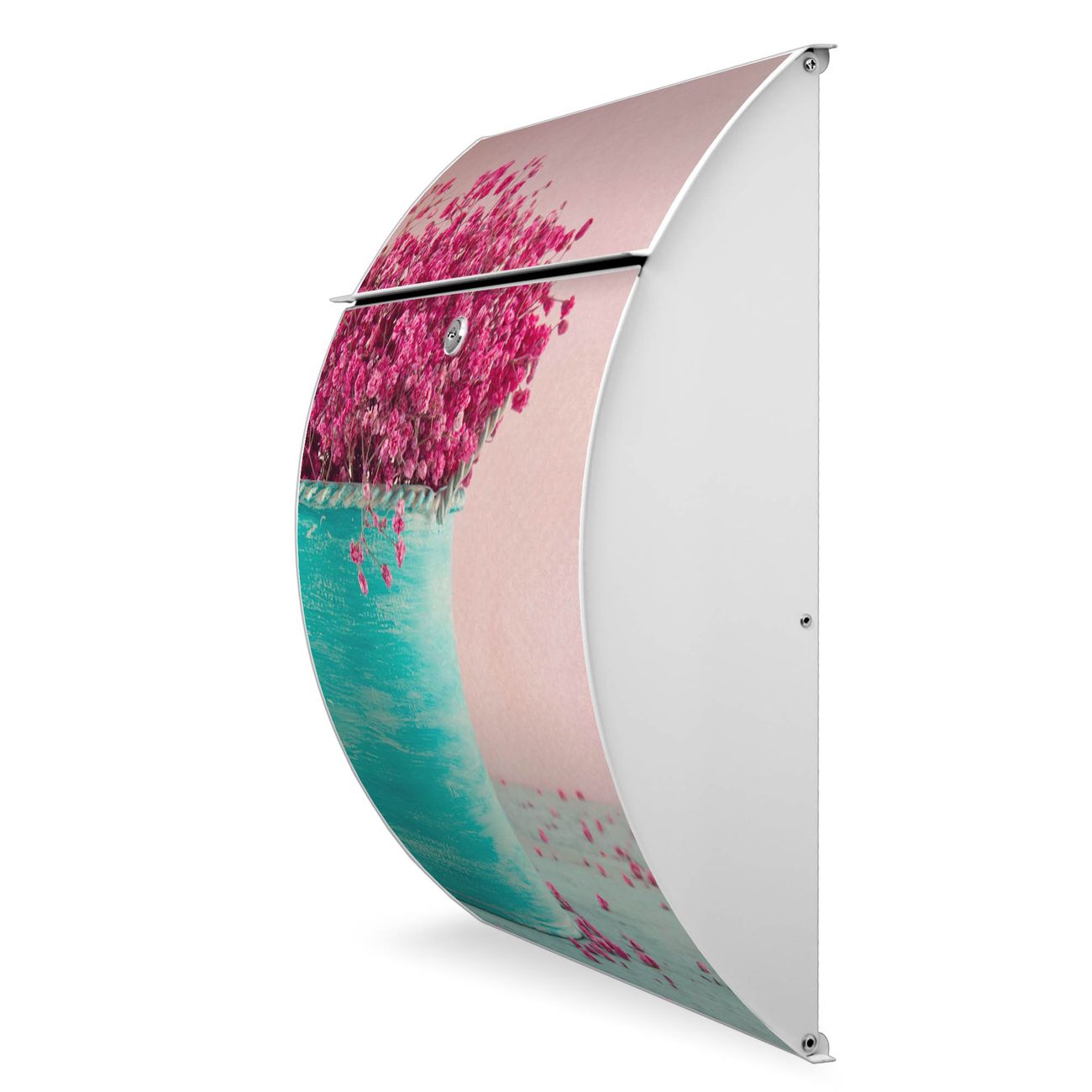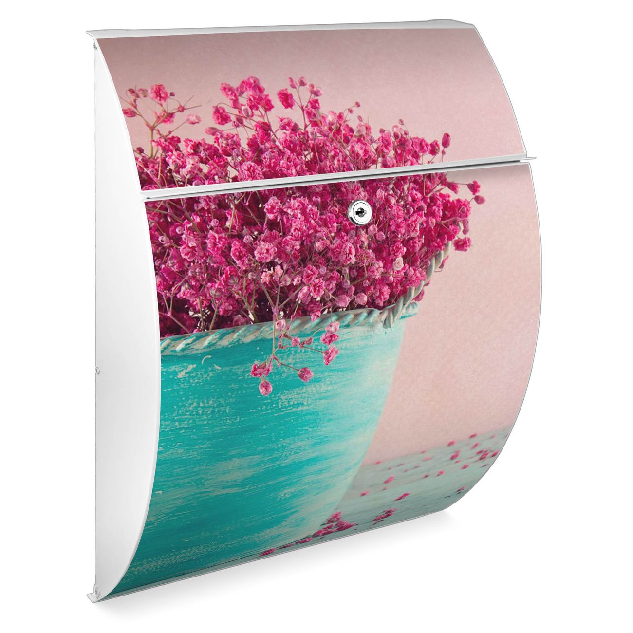 Der weiße Burg Wächter Design Briefkasten mit Motiv Pinke Trockenblumen bietet Ihnen mit seinem Fassungsvermögen genügend Platz auch für große A4 Sendungen. Auf Wunsch können Sie bei uns auch den passenden Ständer kaufen und so aus dem Wandbriefkasten einen Standbriefkasten machen.