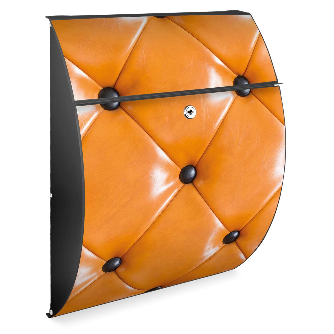 FUNKTION: DESIGN: Das Modell Riviera mit Motiv Polster Orange hat ein sehr ansprechendes und zeitloses Design. Heben Sie Sich von der tristen grauen Masse ab, ohne auf Funktionalität zu verzichten. Der integrierte Öffnungsstopp ermöglicht eine einfache Handhabung beim Entnehmen der Post. DETAILS: Der Postkasten besteht aus vollflächig verzinktem Stahl welcher in Anthrazit lackiert wurde. Das Motiv besteht aus einer wetter- und UV-festen Folie, die mit einem Schutzlaminat überzogen ist, durch die Ihren Briefkasten zusätzlich vor Kratzern geschützt ist. Sie erhalten 2 Schlüssel sowie das passende Montagematerial. NUTZEN: Sie können den Briefkasten sowohl als Wandbriefkasten montieren oder einen passenden Ständer kaufen und als Standbriefkasten einbetonieren. Die Größe bietet genügend Platz für Sendungen aller Art, der Einwurf fasst auch größere A4 Sendungen. BANJADO: Ihr Briefkasten wird in Sachsen in einer kleinen Manufaktur von Hand veredelt. Die Motivfolie ist lösungsmittelfrei und schutzlaminiert, dies sorgt für einen langen Halt. Wir legen großen Wert auf die Verbindung von Funktionalität und Design. Sie erhalten Handarbeit aus Sachsen.