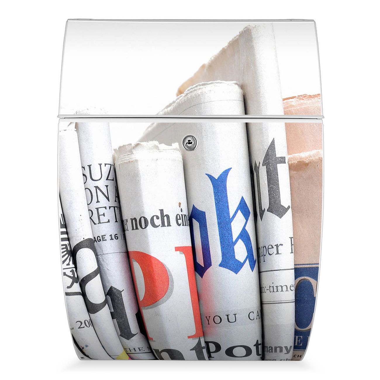Der weiße Burg Wächter Design Briefkasten mit Motiv Presse bietet Ihnen mit seinem Fassungsvermögen genügend Platz auch für große A4 Sendungen. Auf Wunsch können Sie bei uns auch den passenden Ständer kaufen und so aus dem Wandbriefkasten einen Standbriefkasten machen.