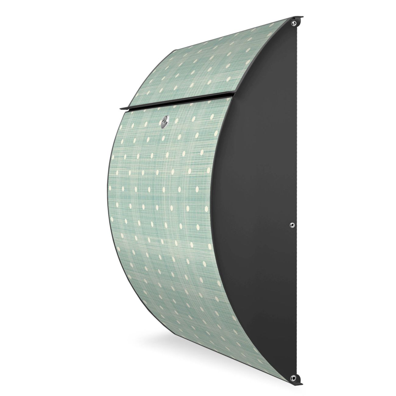 FUNKTION: DESIGN: Das Modell Riviera mit Motiv Punkte Lindgrün hat ein sehr ansprechendes und zeitloses Design. Heben Sie Sich von der tristen grauen Masse ab, ohne auf Funktionalität zu verzichten. Der integrierte Öffnungsstopp ermöglicht eine einfache Handhabung beim Entnehmen der Post. DETAILS: Der Postkasten besteht aus vollflächig verzinktem Stahl welcher in Anthrazit lackiert wurde. Das Motiv besteht aus einer wetter- und UV-festen Folie, die mit einem Schutzlaminat überzogen ist, durch die Ihren Briefkasten zusätzlich vor Kratzern geschützt ist. Sie erhalten 2 Schlüssel sowie das passende Montagematerial. NUTZEN: Sie können den Briefkasten sowohl als Wandbriefkasten montieren oder einen passenden Ständer kaufen und als Standbriefkasten einbetonieren. Die Größe bietet genügend Platz für Sendungen aller Art, der Einwurf fasst auch größere A4 Sendungen. BANJADO: Ihr Briefkasten wird in Sachsen in einer kleinen Manufaktur von Hand veredelt. Die Motivfolie ist lösungsmittelfrei und schutzlaminiert, dies sorgt für einen langen Halt. Wir legen großen Wert auf die Verbindung von Funktionalität und Design. Sie erhalten Handarbeit aus Sachsen.
