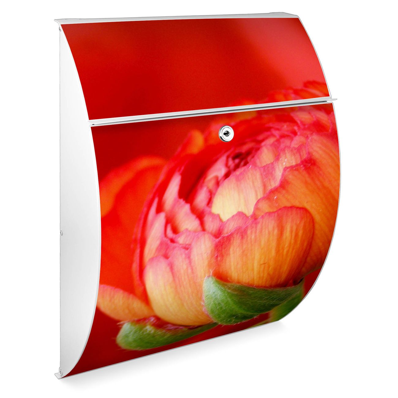 Der weiße Burg Wächter Design Briefkasten mit Motiv Ranunkel bietet Ihnen mit seinem Fassungsvermögen genügend Platz auch für große A4 Sendungen. Auf Wunsch können Sie bei uns auch den passenden Ständer kaufen und so aus dem Wandbriefkasten einen Standbriefkasten machen.