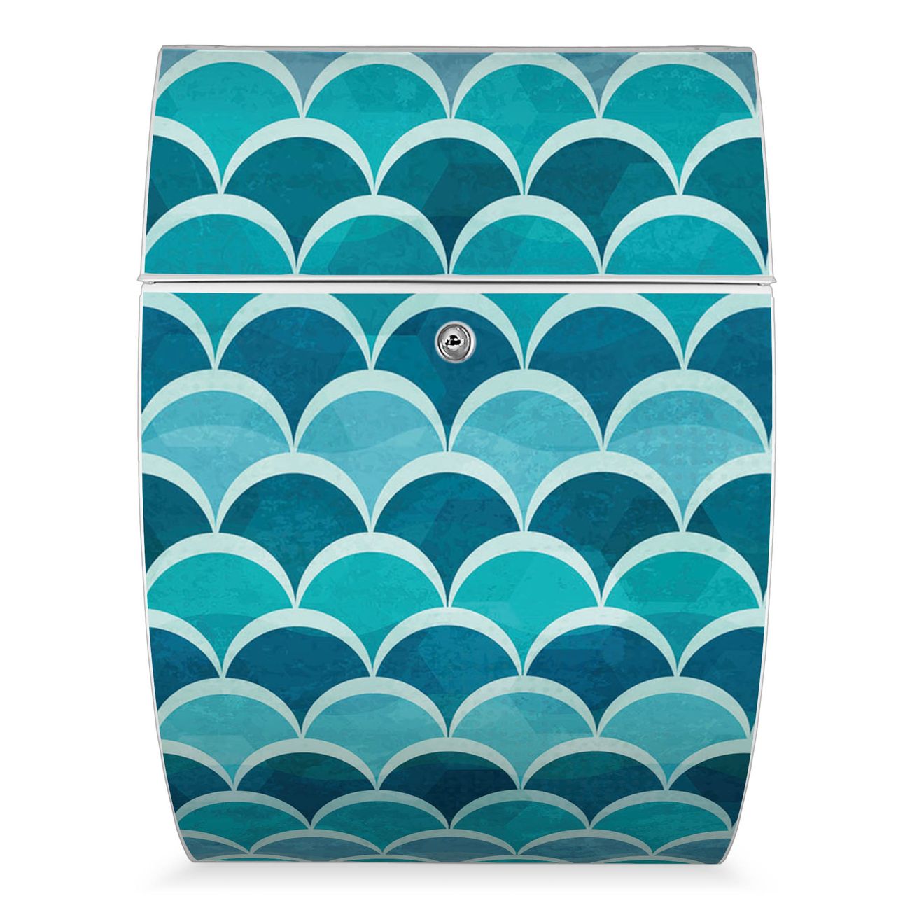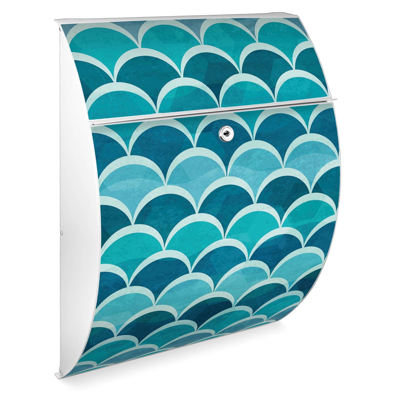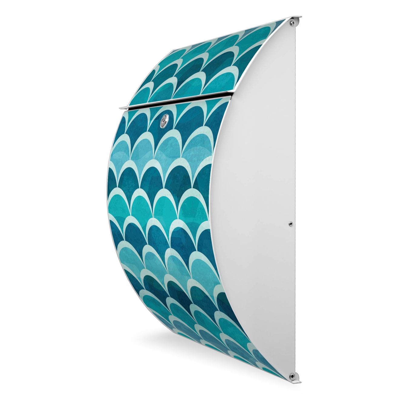 FUNKTION: DESIGN: Das Modell Riviera mit Motiv Raue See hat ein sehr ansprechendes und zeitloses Design. Heben Sie Sich von der tristen grauen Masse ab, ohne auf Funktionalität zu verzichten. Der integrierte Öffnungsstopp ermöglicht eine einfache Handhabung beim Entnehmen der Post. DETAILS: Der Postkasten besteht aus vollflächig verzinktem Stahl welcher in weiß lackiert wurde. Das Motiv besteht aus einer wetter- und UV-festen Folie, die mit einem Schutzlaminat überzogen ist, durch die Ihren Briefkasten zusätzlich vor Kratzern geschützt ist. Sie erhalten 2 Schlüssel sowie das passende Montagematerial. NUTZEN: Sie können den Briefkasten sowohl als Wandbriefkasten montieren oder einen passenden Ständer kaufen und als Standbriefkasten einbetonieren. Die Größe bietet genügend Platz für Sendungen aller Art, der Einwurf fasst auch größere A4 Sendungen. BANJADO: Ihr Briefkasten wird in Sachsen in einer kleinen Manufaktur von Hand veredelt. Die Motivfolie ist lösungsmittelfrei und schutzlaminiert, dies sorgt für einen langen Halt. Wir legen großen Wert auf die Verbindung von Funktionalität und Design. Sie erhalten Handarbeit aus Sachsen.