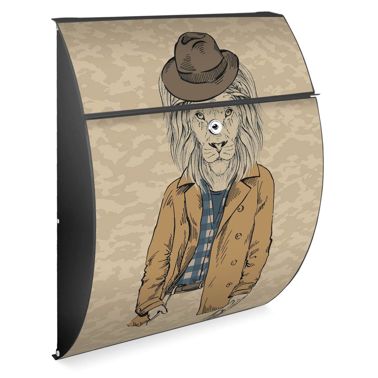FUNKTION: DESIGN: Das Modell Riviera mit Motiv Retro Style hat ein sehr ansprechendes und zeitloses Design. Heben Sie Sich von der tristen grauen Masse ab, ohne auf Funktionalität zu verzichten. Der integrierte Öffnungsstopp ermöglicht eine einfache Handhabung beim Entnehmen der Post. DETAILS: Der Postkasten besteht aus vollflächig verzinktem Stahl welcher in Anthrazit lackiert wurde. Das Motiv besteht aus einer wetter- und UV-festen Folie, die mit einem Schutzlaminat überzogen ist, durch die Ihren Briefkasten zusätzlich vor Kratzern geschützt ist. Sie erhalten 2 Schlüssel sowie das passende Montagematerial. NUTZEN: Sie können den Briefkasten sowohl als Wandbriefkasten montieren oder einen passenden Ständer kaufen und als Standbriefkasten einbetonieren. Die Größe bietet genügend Platz für Sendungen aller Art, der Einwurf fasst auch größere A4 Sendungen. BANJADO: Ihr Briefkasten wird in Sachsen in einer kleinen Manufaktur von Hand veredelt. Die Motivfolie ist lösungsmittelfrei und schutzlaminiert, dies sorgt für einen langen Halt. Wir legen großen Wert auf die Verbindung von Funktionalität und Design. Sie erhalten Handarbeit aus Sachsen.
