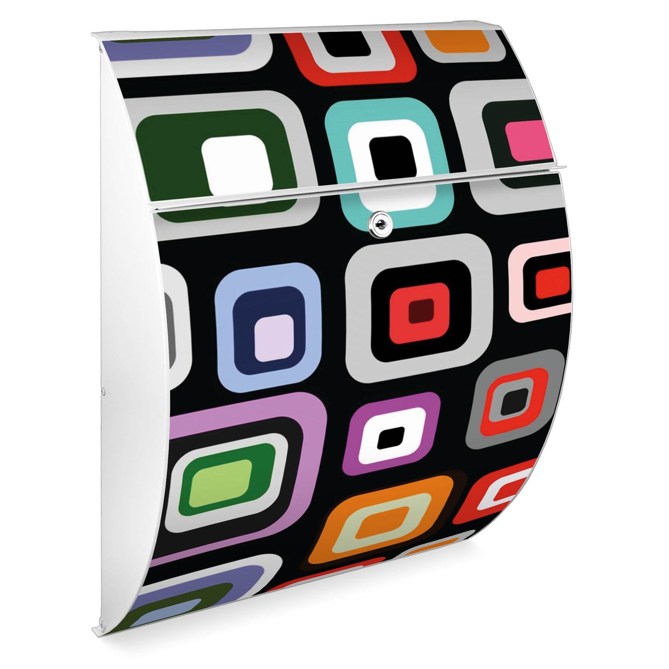 Der weiße Burg Wächter Design Briefkasten mit Motiv Retro bietet Ihnen mit seinem Fassungsvermögen genügend Platz auch für große A4 Sendungen. Auf Wunsch können Sie bei uns auch den passenden Ständer kaufen und so aus dem Wandbriefkasten einen Standbriefkasten machen.